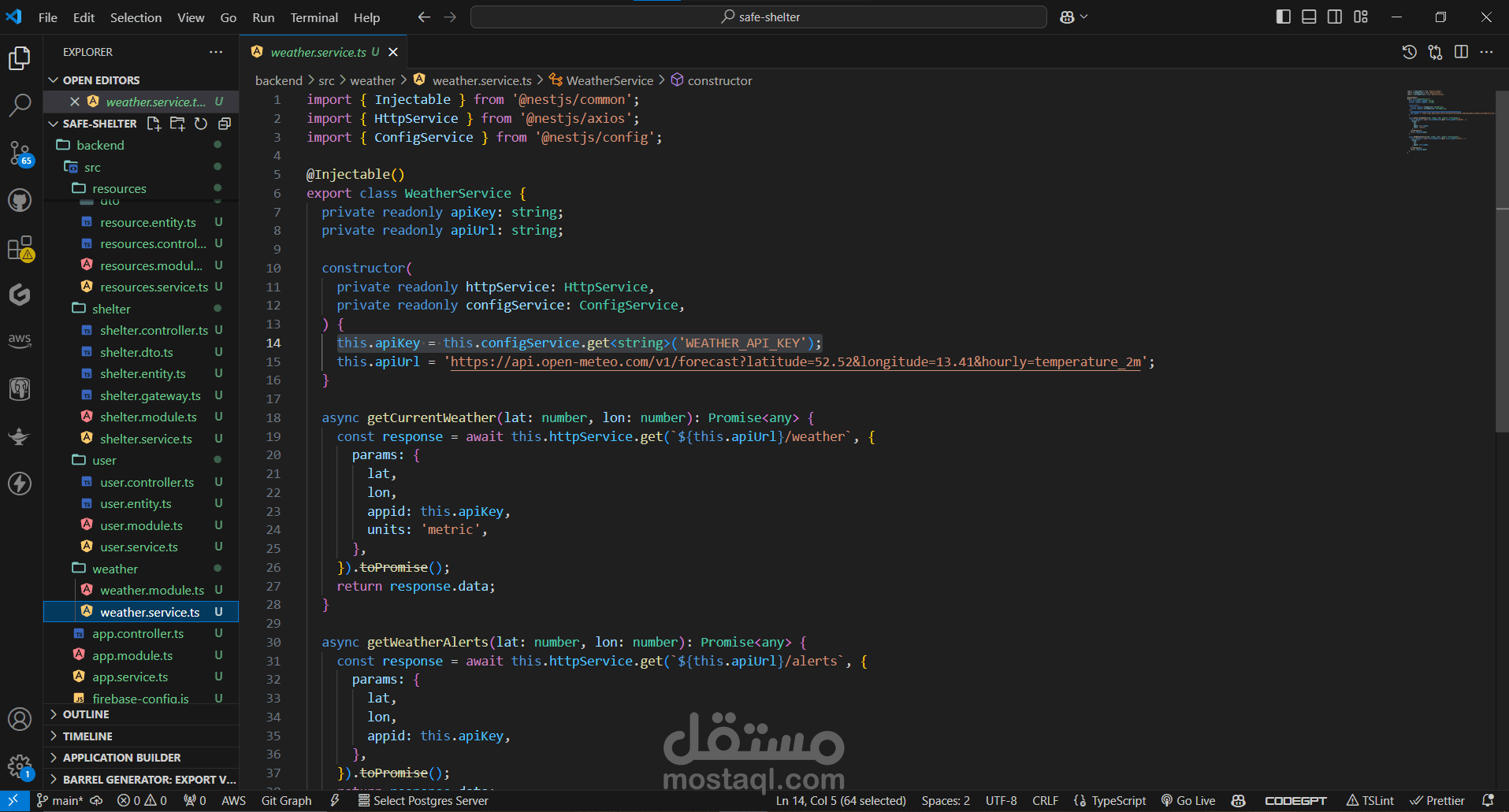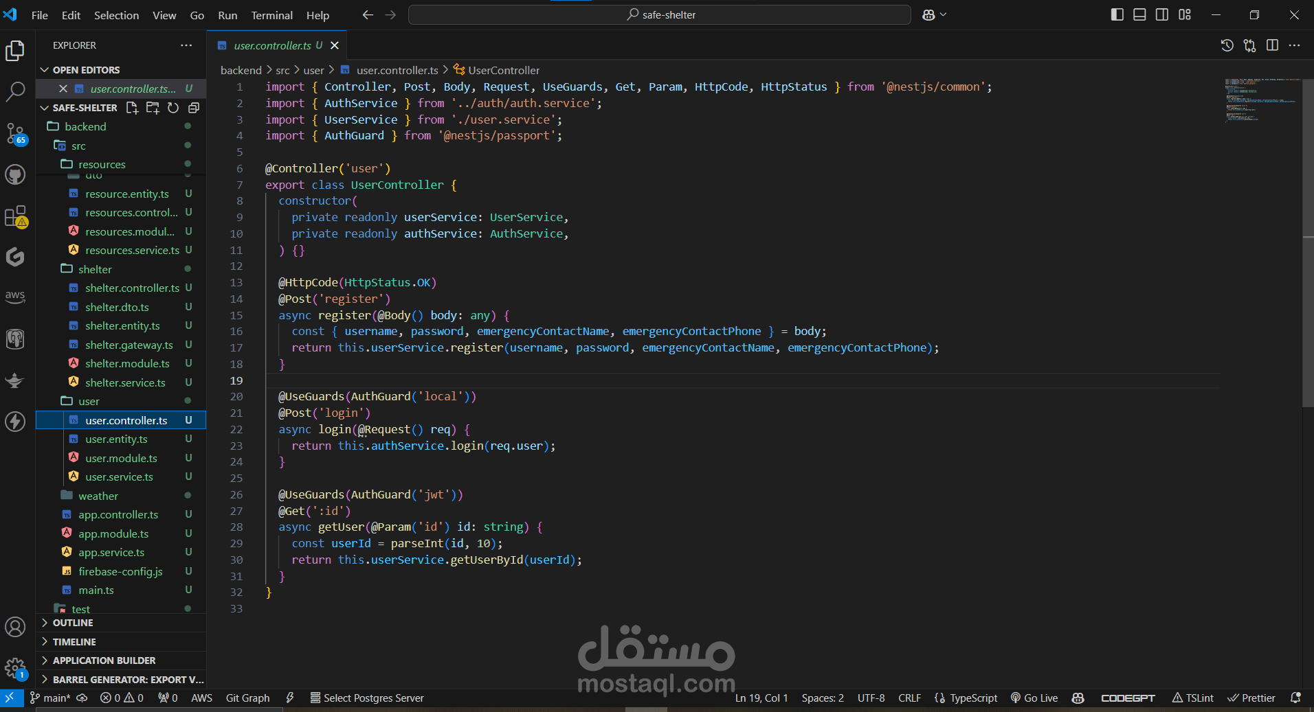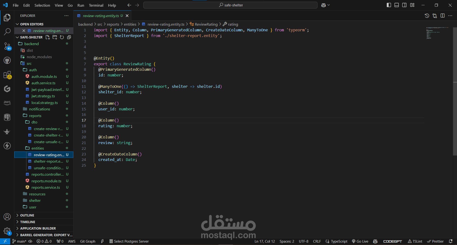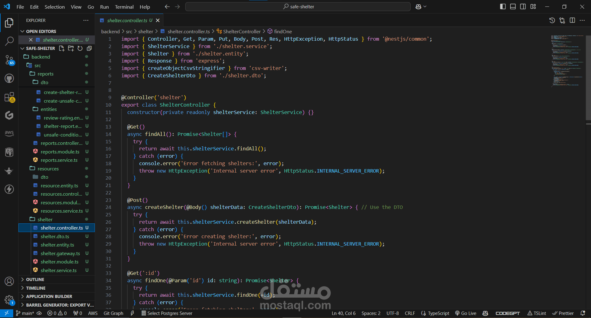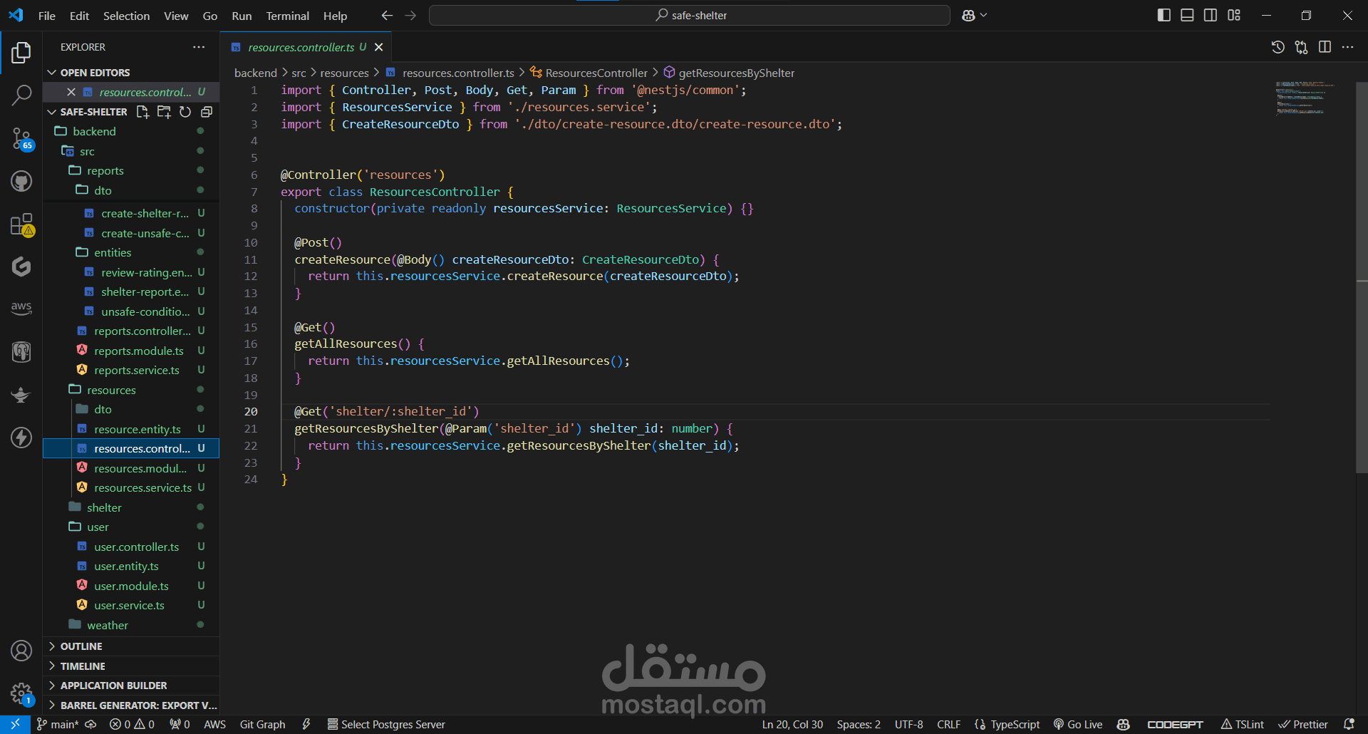 Stores shelter coordinates in PostgreSQL. API endpoint provided for retrieving shelter data to be displayed on the map.