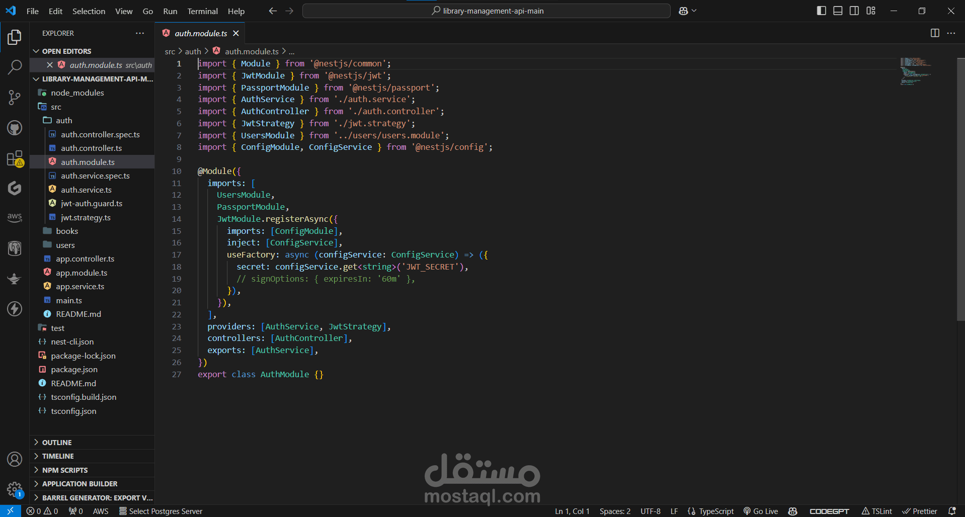 auth.module.ts: The authentication module, which imports necessary modules and provides authentication services.