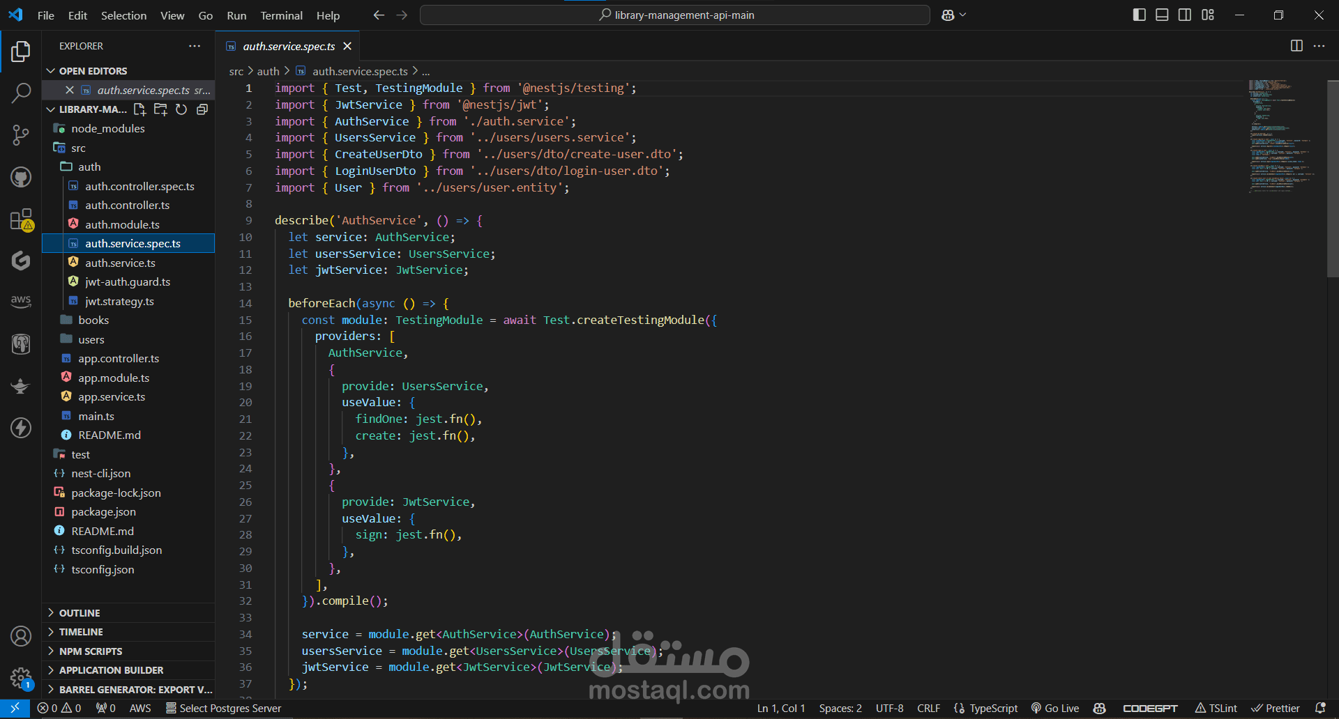 auth.service.spec.ts: Unit tests for the authentication service.