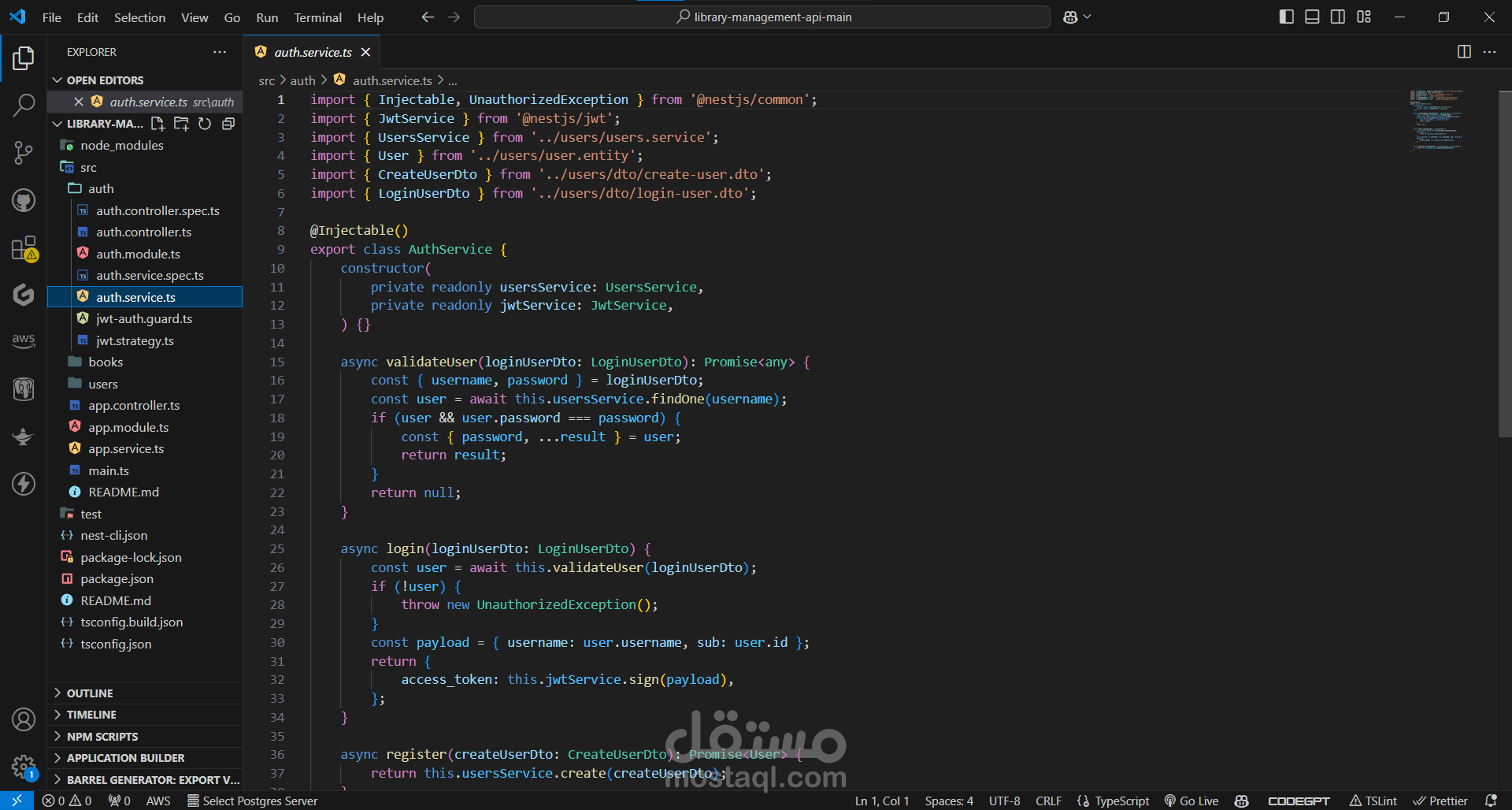 This project is a library management API built using the NestJS framework. It leverages TypeScript and various NestJS modules to provide a robust and scalable backend service. Below is a detailed description of the project's structure and functionality: