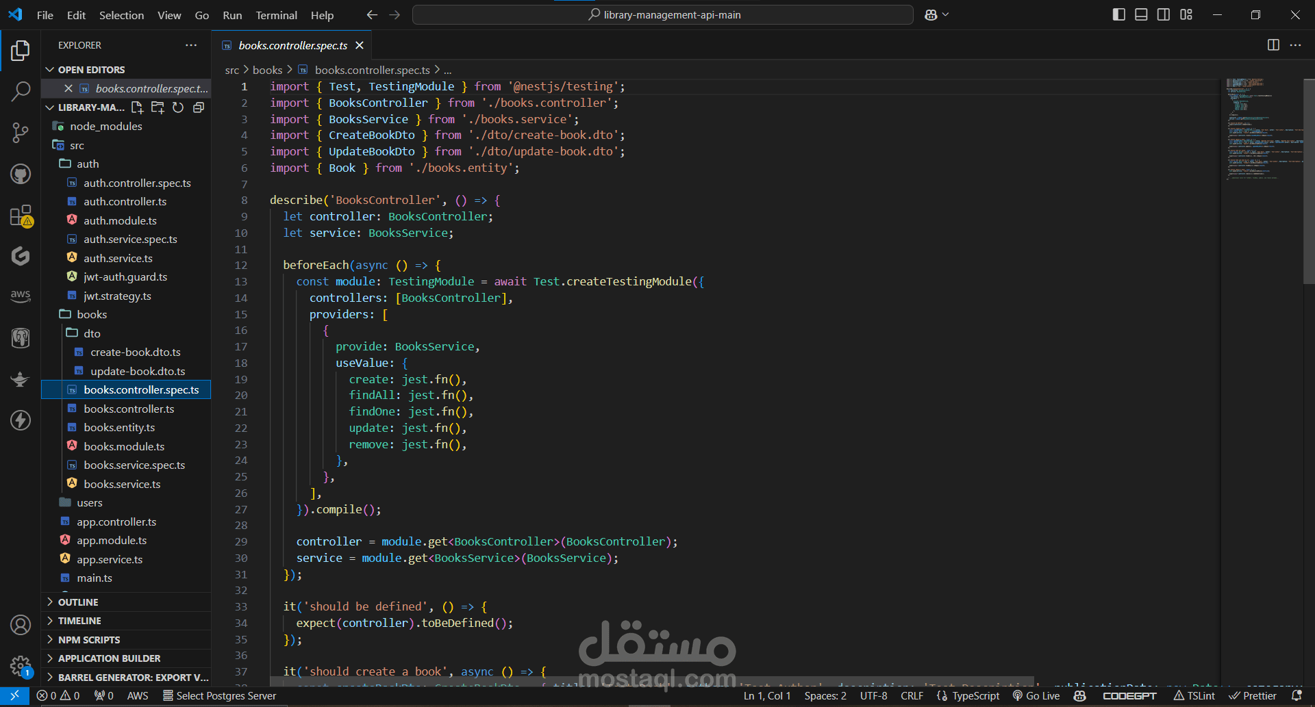 books.controller.spec.ts: Unit tests for the books controller.