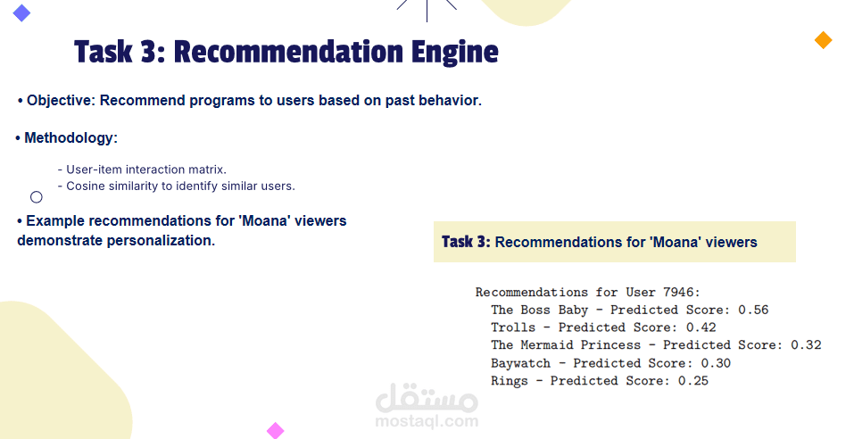 Example recommendations for 'Moana' viewers demonstrated personalization-
