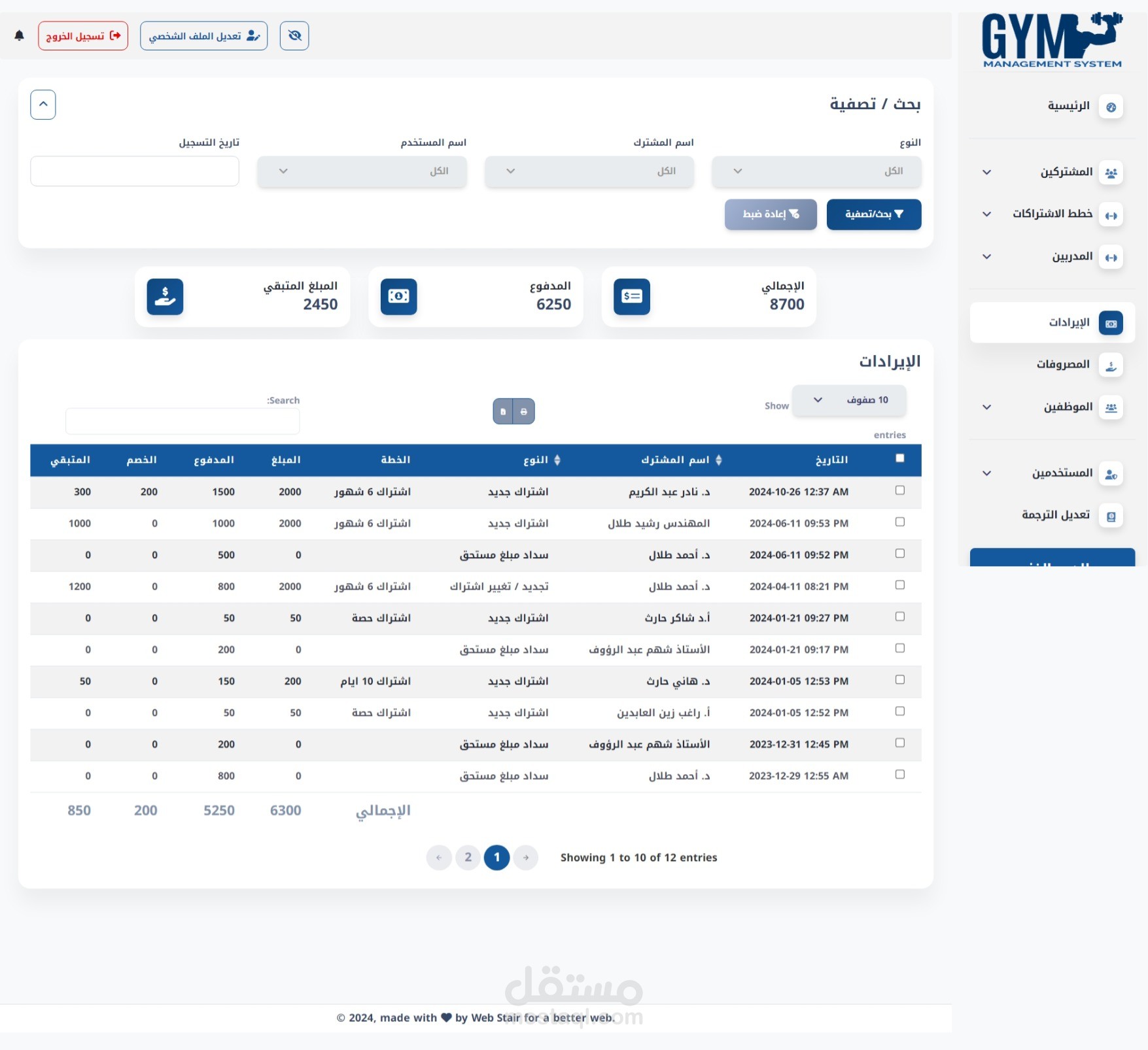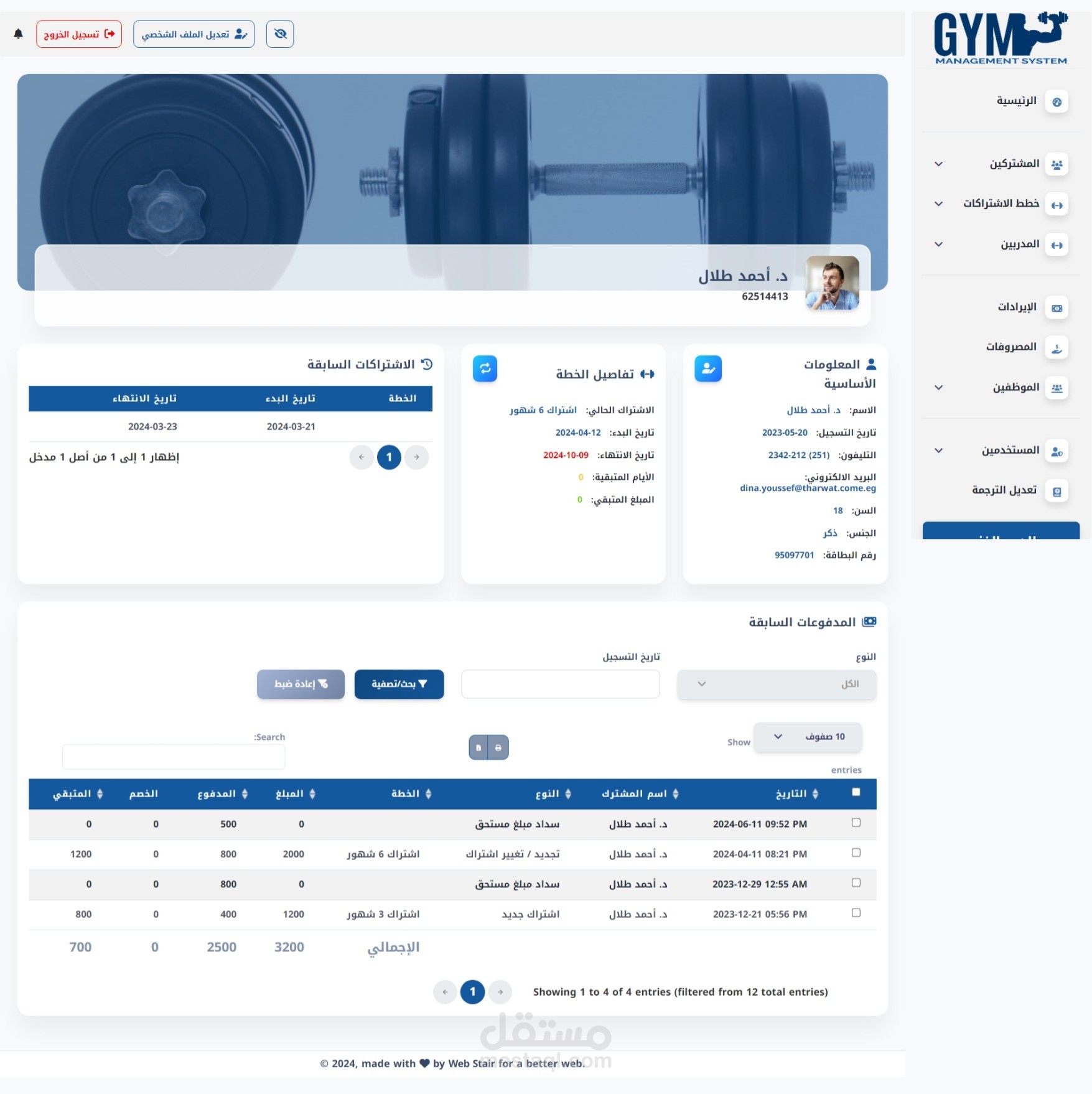 برمجة خاصة لنظام إدارة صالة رياضية (GYM) بكافة الامكانيات التي تحتاجها لإدارة كل أعمال الصالة الرياضية