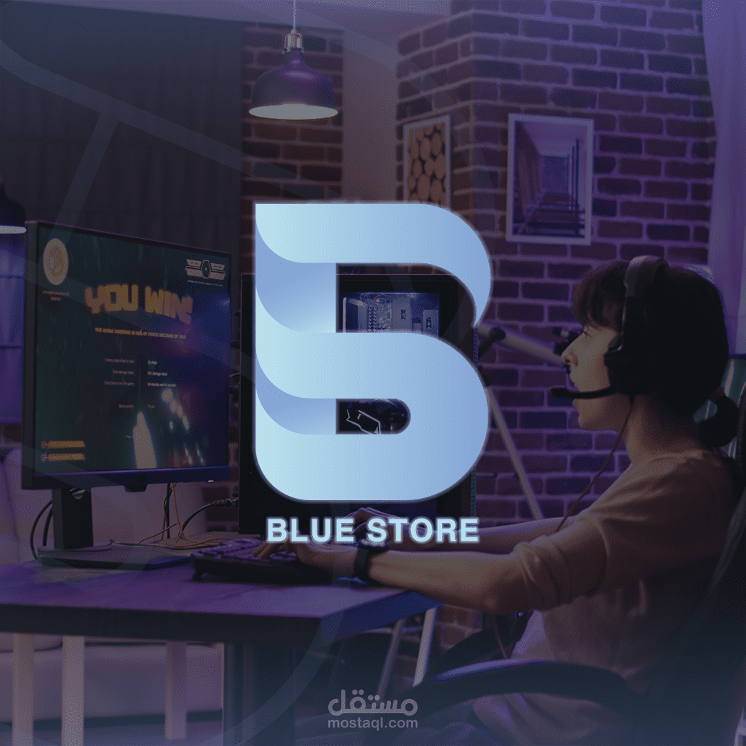 Logo for a gaming store in the name of "BLUE STORE