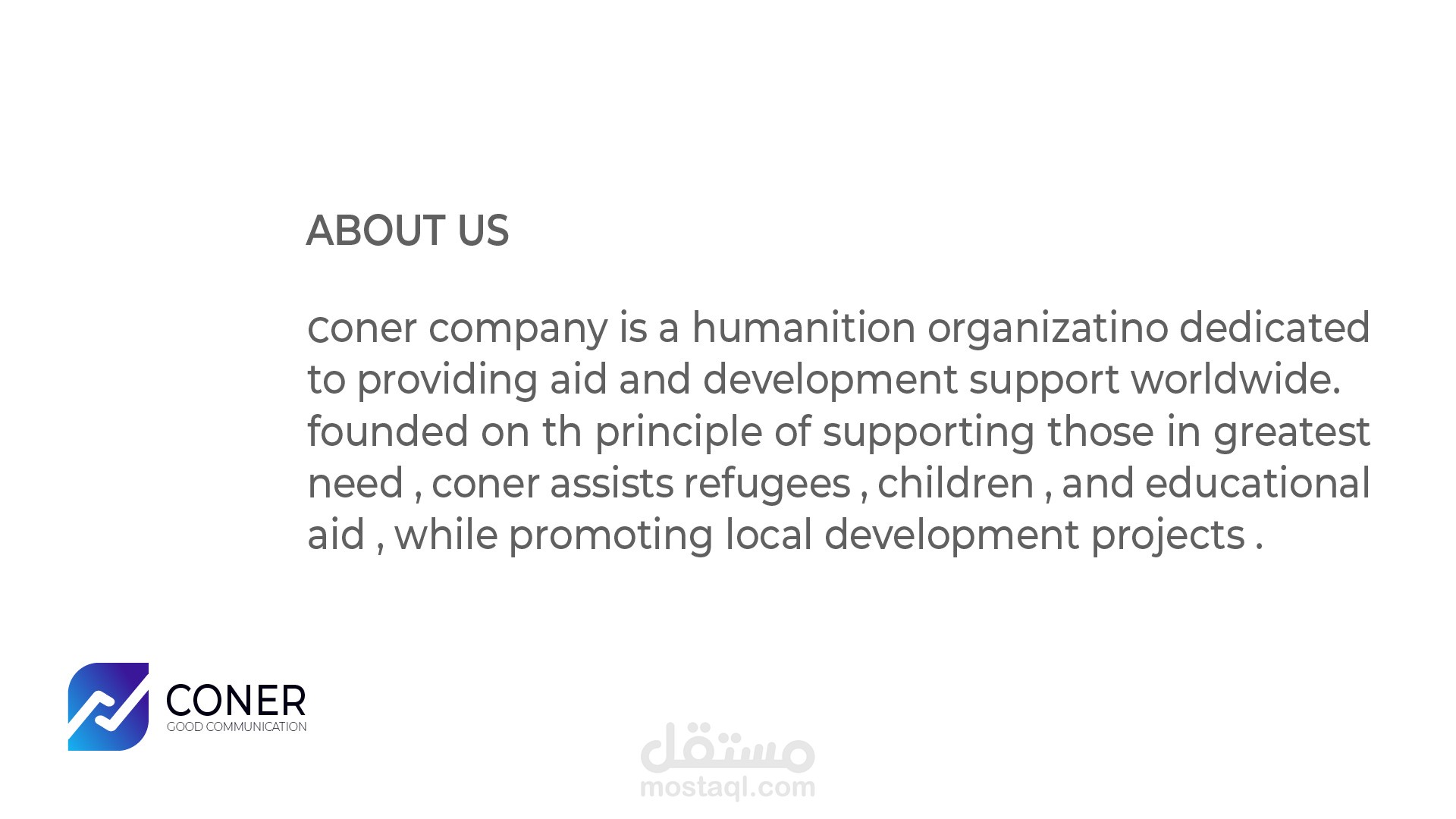 "كونير هي شركة رائدة في تقديم المساعدات الإنسانية والتنموية، تعمل على توفير الدعم والخدمات الأساسية للفئات الأكثر احتياجًا في المجتمعات المحلية والعالمية. تستهدف الشركة تحسين ظروف الحياة والصحة والتعليم والمساهمة في تنمية المجتمعات المستدامة."