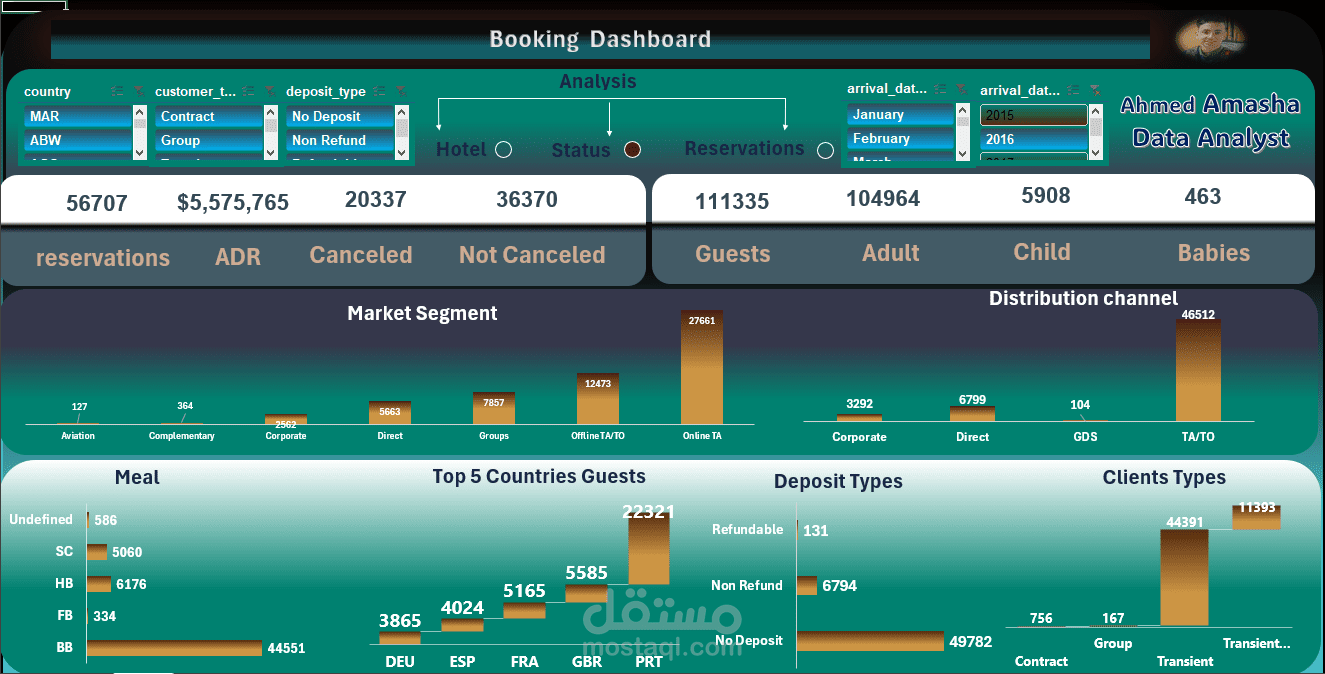 - Distribution Channels: ️ Covers the channels through which reservations are made, such as online booking platforms, travel agencies, and direct bookings. Understanding the effectiveness of each channel can help optimize marketing spend and resource allocation.