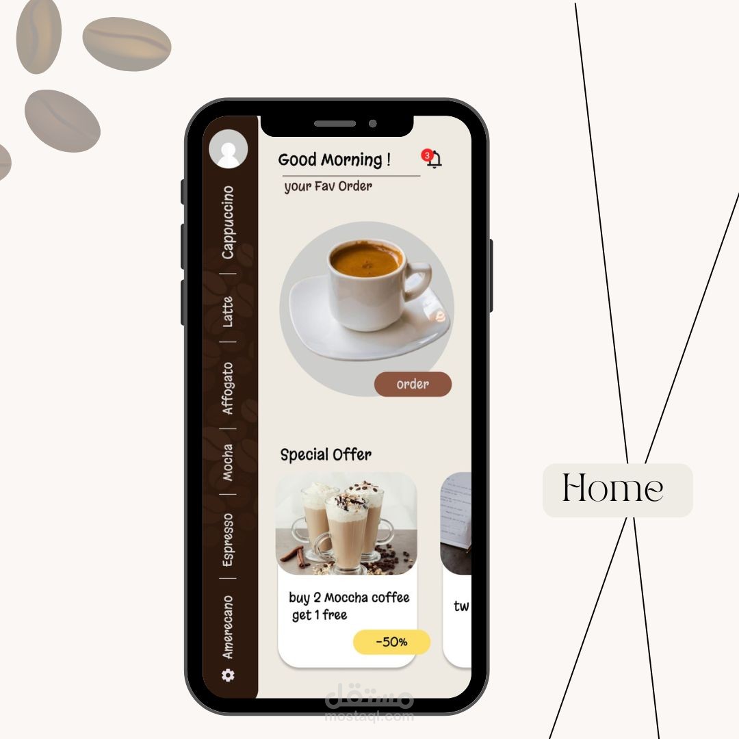 تم تصميم التطبيق بعناية لتلبية جميع احتياجاتك، بدءًا من اختيار نوع القهوة وحتى تتبع طلبك. يتميز التطبيق بواجهة مستخدم أنيقة وسهلة الاستخدام، مما يجعل عملية الطلب ممتعة وسريعة.