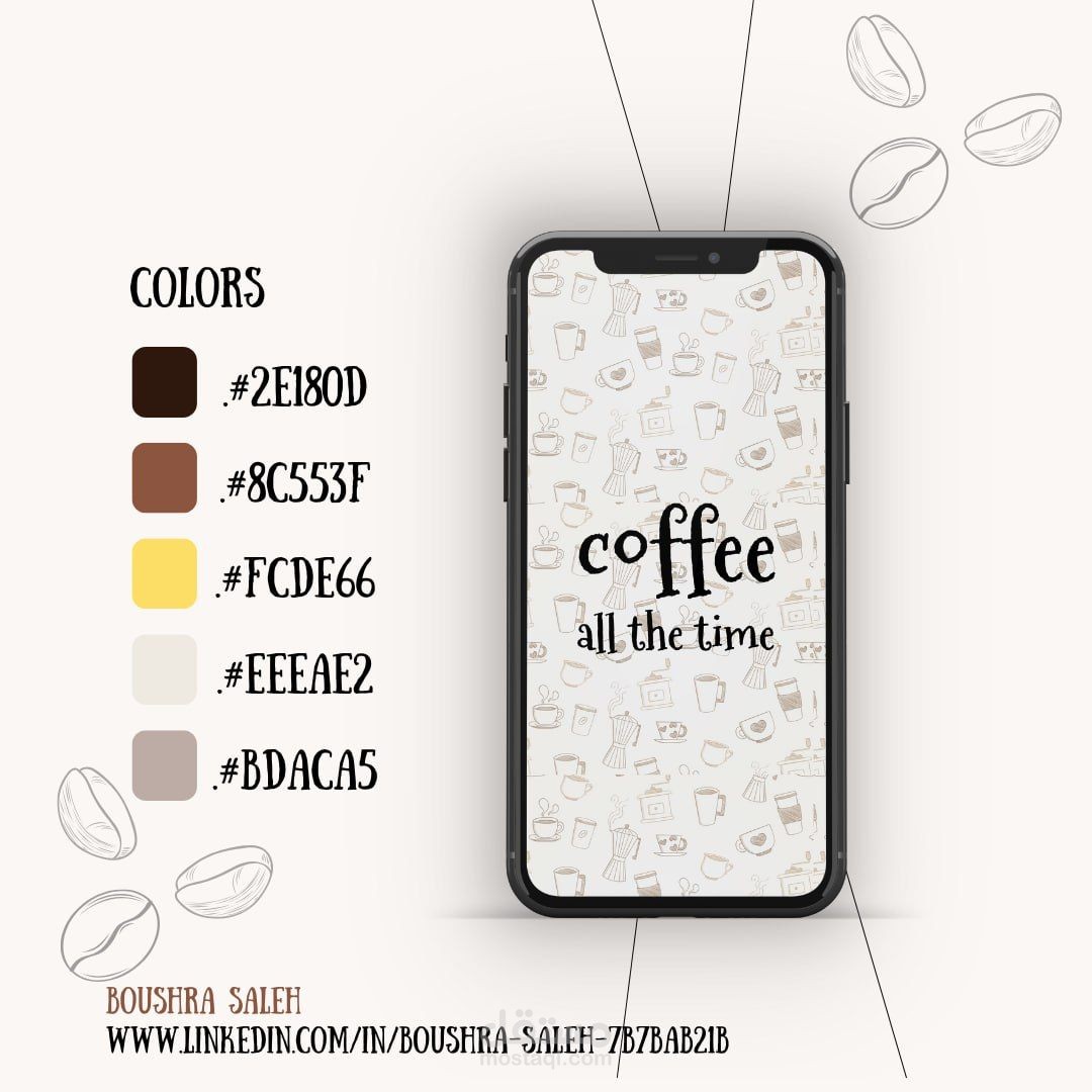 تم تصميم واجهة المستخدم للتطبيق بعناية باستخدام برنامج Figma، مع التركيز على توفير تجربة مستخدم سلسة وجمالية. الألوان المستخدمة في التصميم تعكس أجواء الاسترخاء والهدوء المرتبطة بتناول القهوة، والأيقونات الواضحة تسهل التنقل بين مختلف شاشات التطبيق.