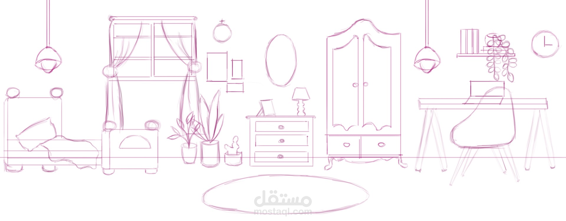 تصميم باكجراوند مع شخصية فيكتور من أجل التحريك لفيديو موشن علي أفتر ايفكت تم رسم سكتش مبداي علي الفوتوشوب بعد جمع ريفرانس وادخاله اليستراتور للتصميم