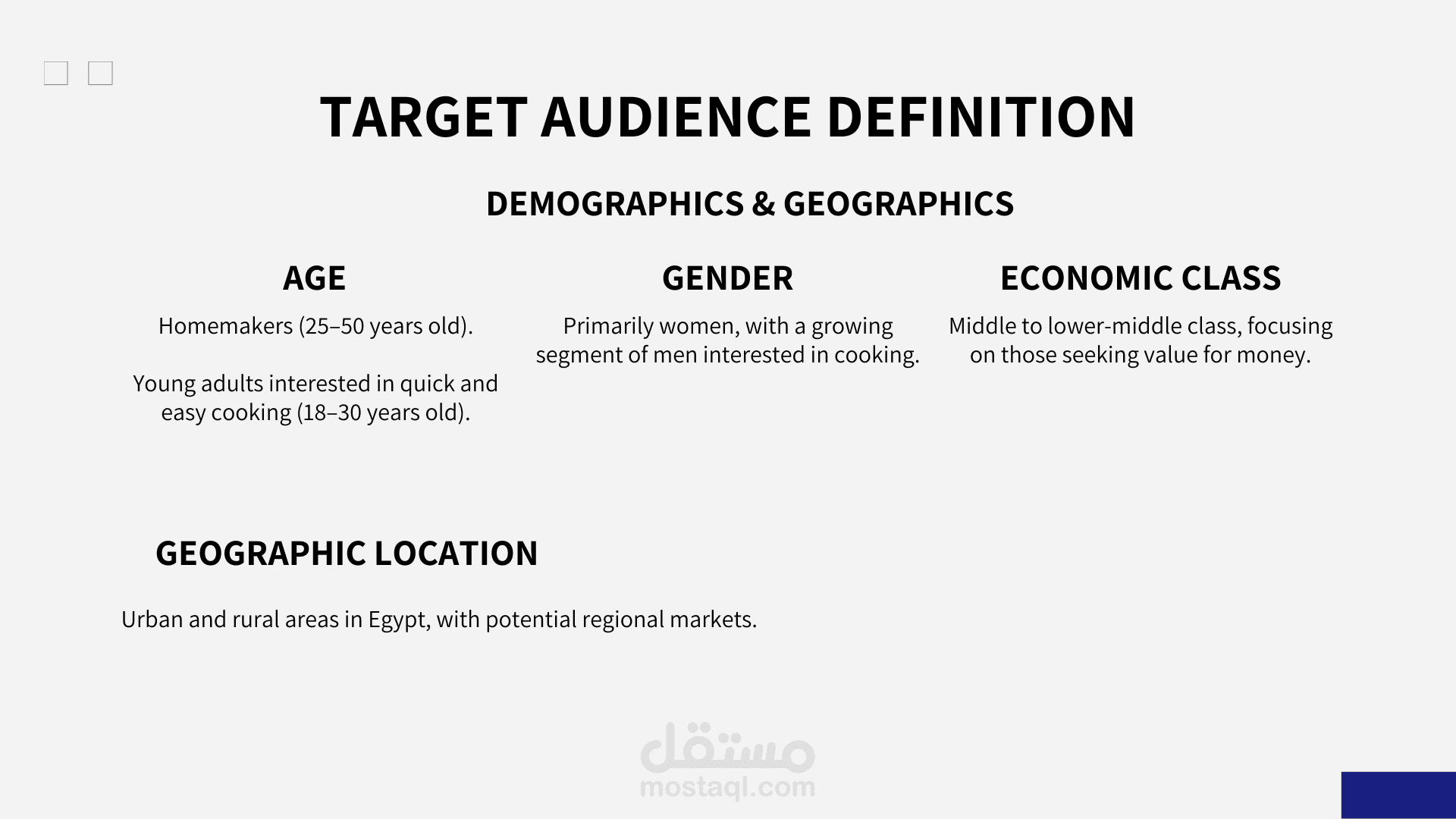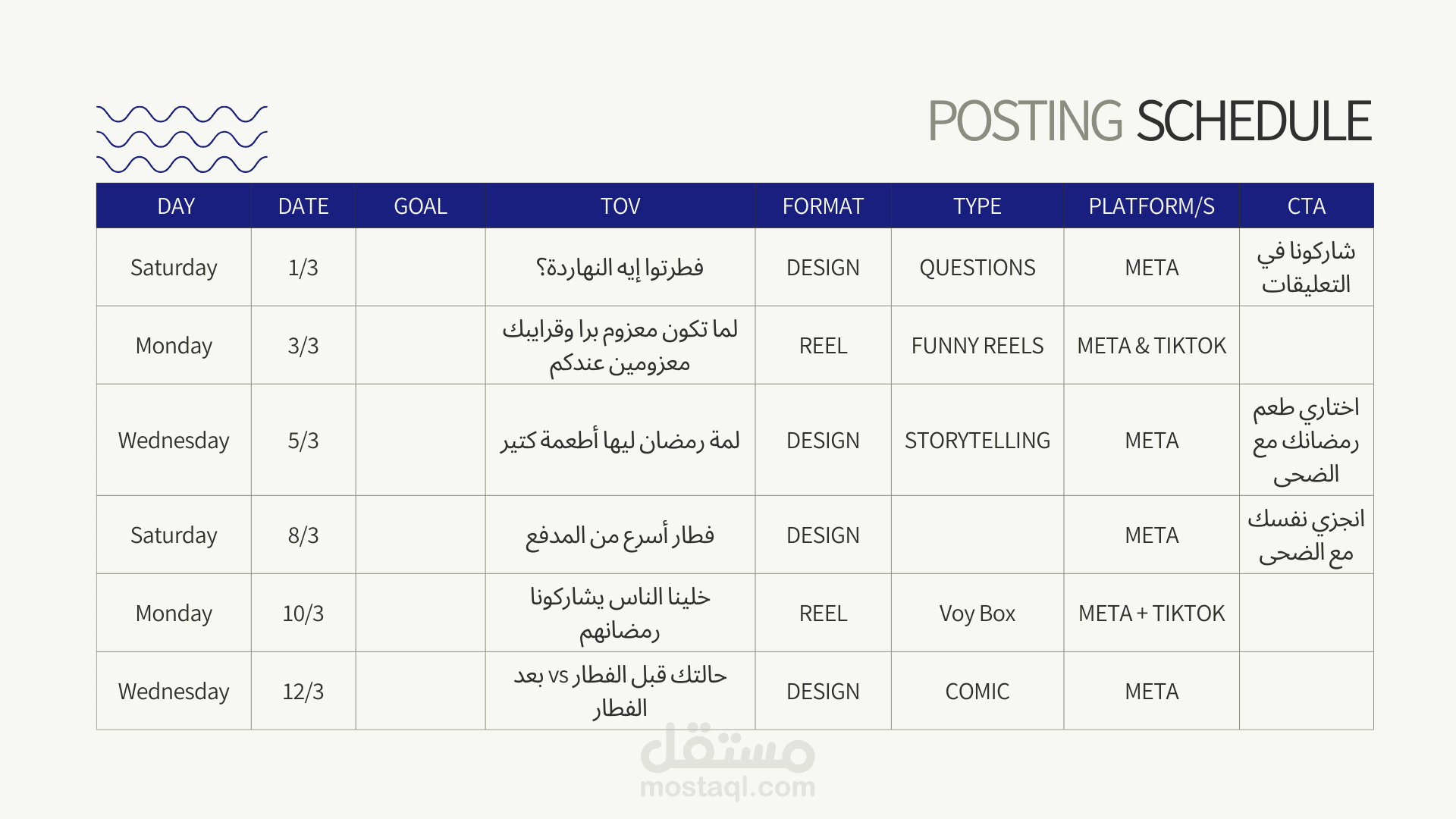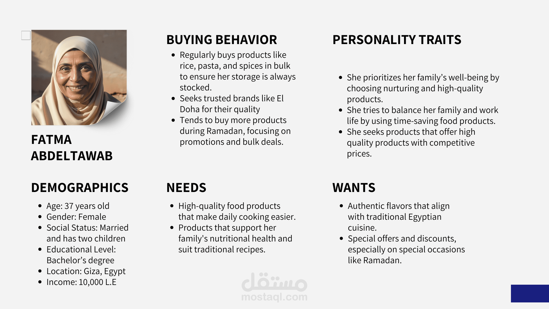 بالنسبة لهذا المشروع، قمت بتطوير استراتيجية تسويق رقمية شاملة مصممة خصيصًا لشركة الدوحة للمنتجات الغذائية، وهي شركة أغذية مصرية رائدة، خلال موسم رمضان شديد التنافسية في عام 2025. تم تصميم الخطة لزيادة ظهور العلامة التجارية والمشاركة والمبيعات من خلال رؤى تعتمد على البيانات والحملات الإبداعية. النتائج الرئيسية: أبحاث السوق وتحليل نقاط القوة والضعف والفرص والتهديدات: أجريت بحثًا متعمقًا حول الجماهير المستهدفة والموقع التنافسي وسلوكيات المستهلكين لتحديد نقاط القوة والفرص والتهديدات الرئيسية. أهداف التسويق الرقمي: وضع مؤشرات أداء رئيسية واضحة وقابلة للقياس مثل زيادة المشاركة بنسبة 25٪ والوعي بنسبة 15٪ والمبيعات بنسبة 50٪. استراتيجية القناة: طورت نهجًا متعدد المنصات، مع التركيز على TikTok وFacebook وInstagram وYouTube وإعلانات Google، مع محتوى مخصص لكل منها. تخطيط المحتوى والحملة: أنشأت تقويمًا مفصلاً للمحتوى، بما في ذلك منشورات القصص، وبكرات الفيديو، والتعاون مع المؤثرين، ومبادرات المحتوى التي ينشئها المستخدم. الحملات المدفوعة والميزانية: تم تخصيص الميزانية عبر القنوات الرئيسية ووضع استراتيجيات الدفع لكل نقرة لتحقيق أقصى عائد على الاستثمار. تحديد موقف العلامة التجارية: تم تعزيز هوية الدوحة كعلامة تجارية جديرة بالثقة وموجهة نحو الأسرة مع منتجات متميزة وبأسعار معقولة. أدوات القياس: أدوات تحليلية موصى بها لتتبع الوصول والمشاركة والتحويلات وإدراك العلامة التجارية.