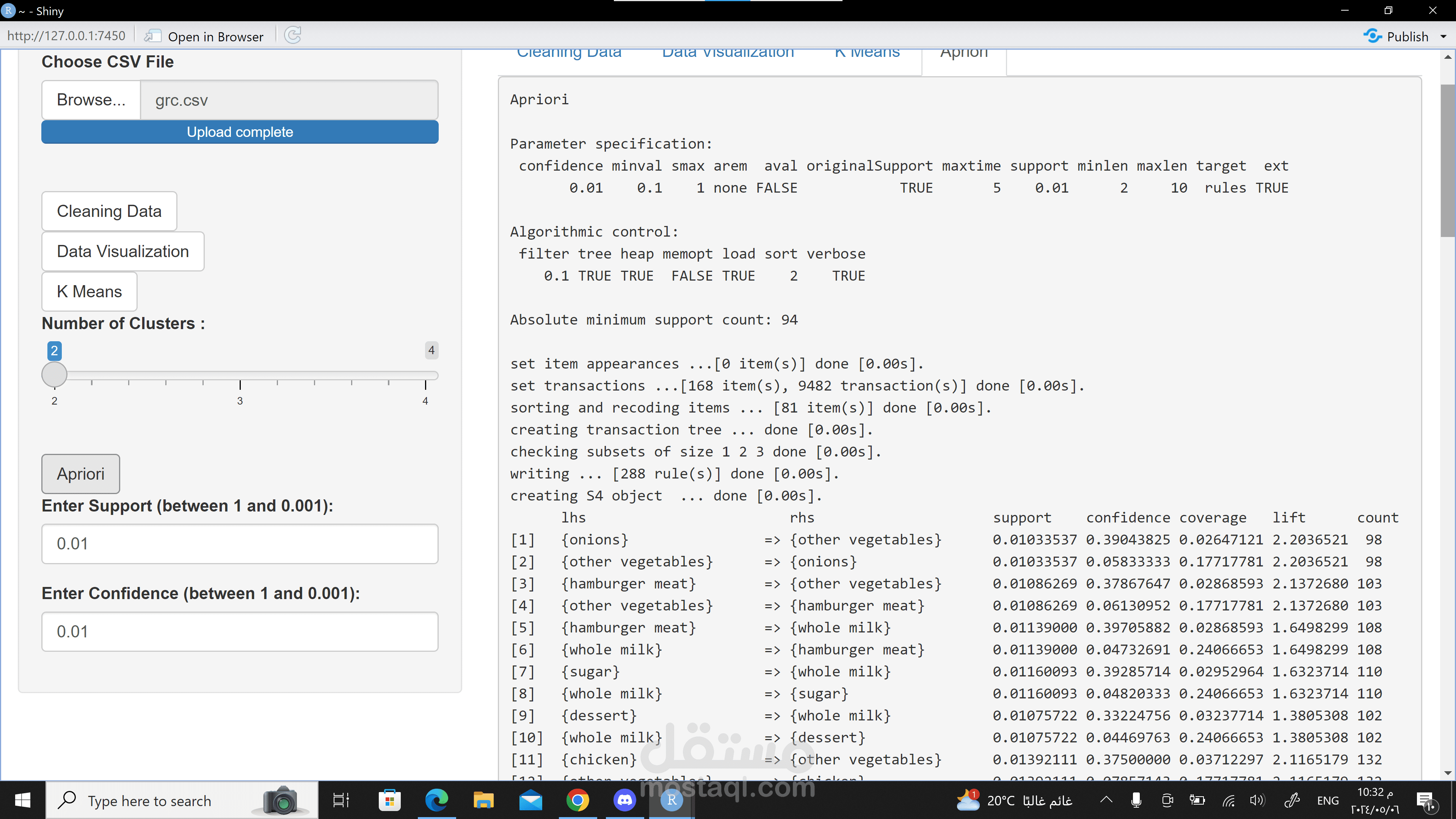 السلام عليكم ,هذه الخدمة تقوم بعمل تحليل البيانات الخاصة بهايبر ماركت وتقوم بمعرفة ما يريده المستهلك للعمل علي ذلك وزيادة الارباح والتي من مميزات هذه الخدمة تقوم بزيادة ارباح السوبر ماركت - معرفة المستهلك المناسب والمنتجات المطلوبة زيادتها-عمل رسومات توضيحية توضح العلاقات بين الداتا وبعضها