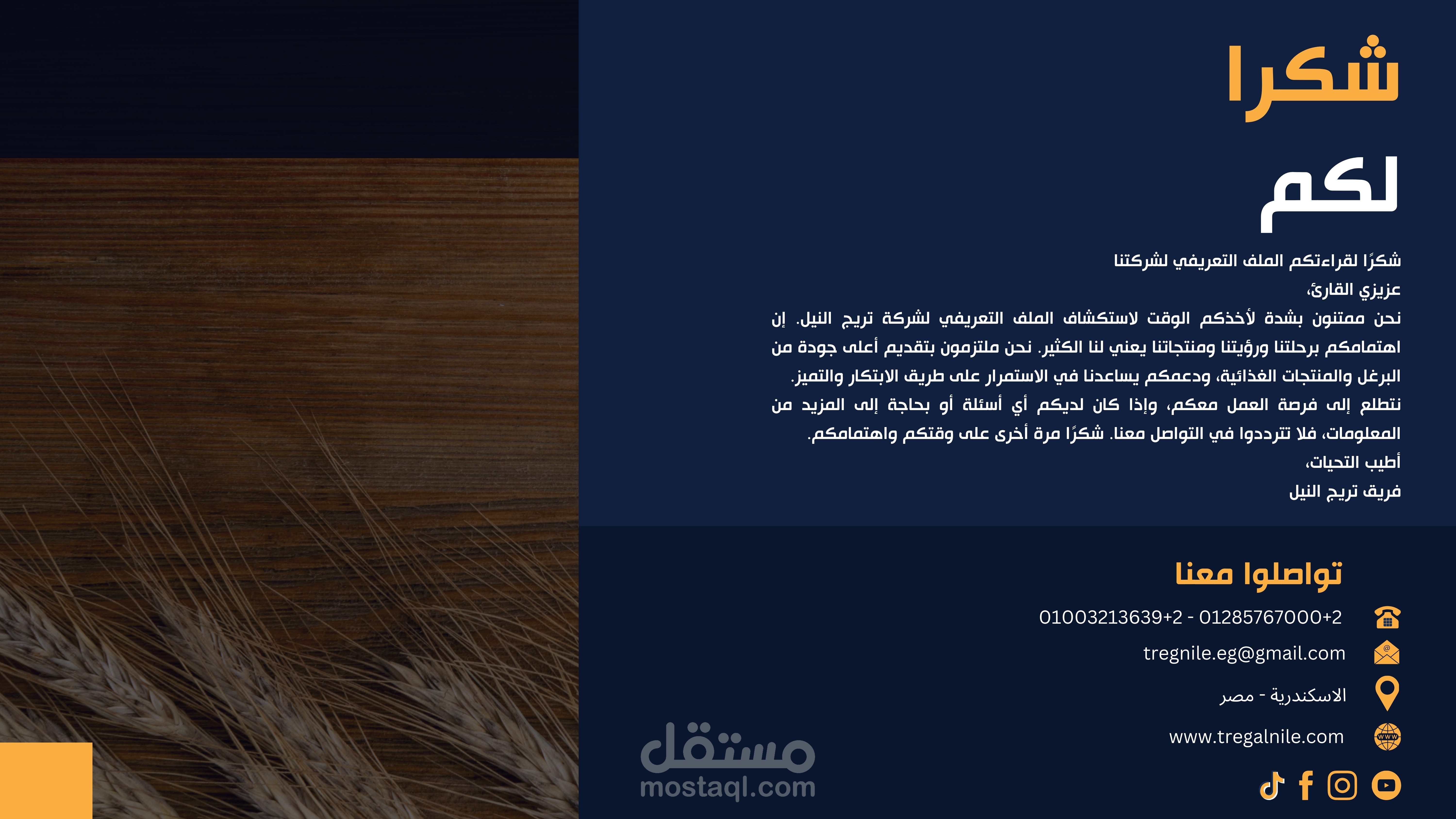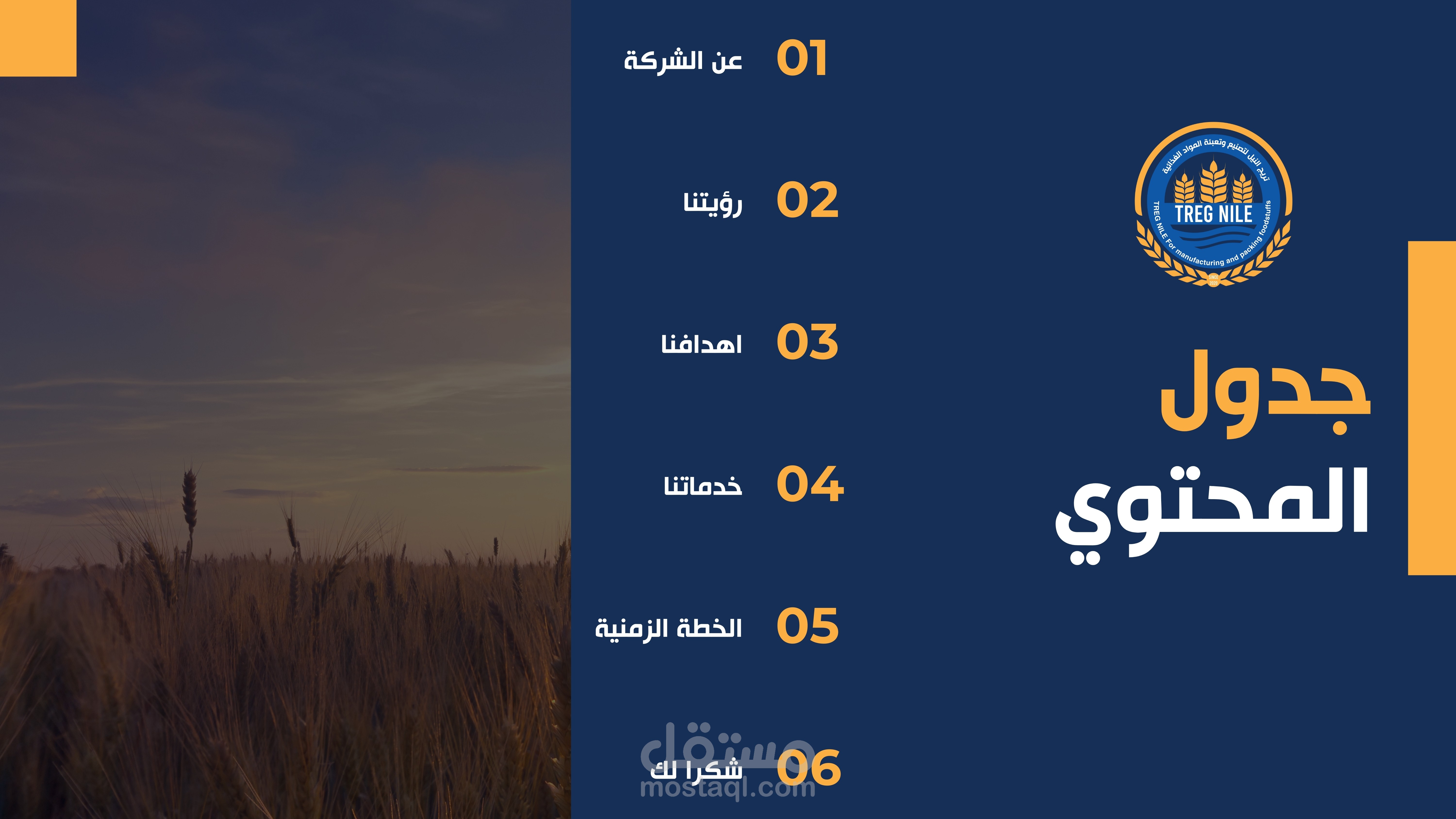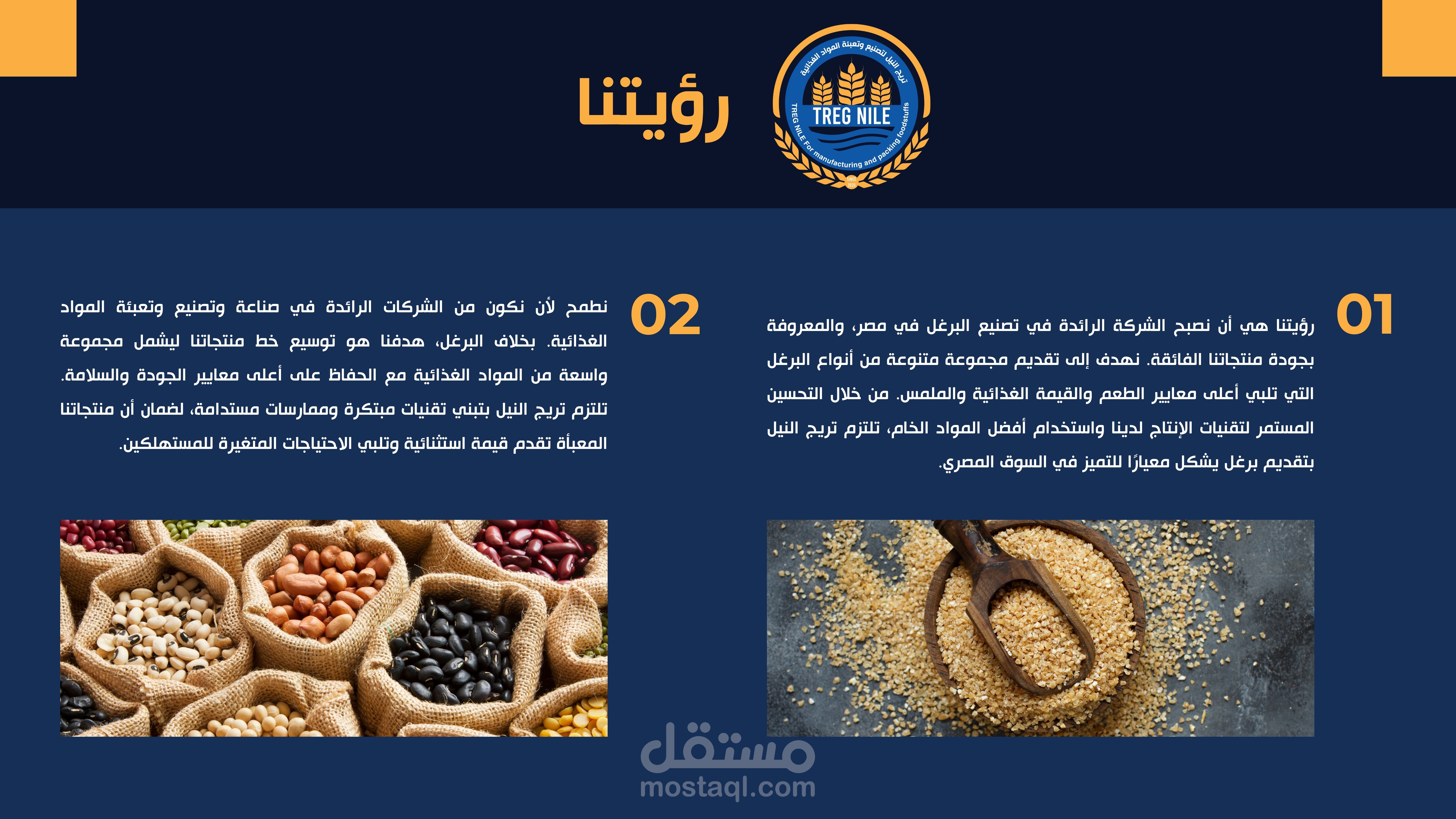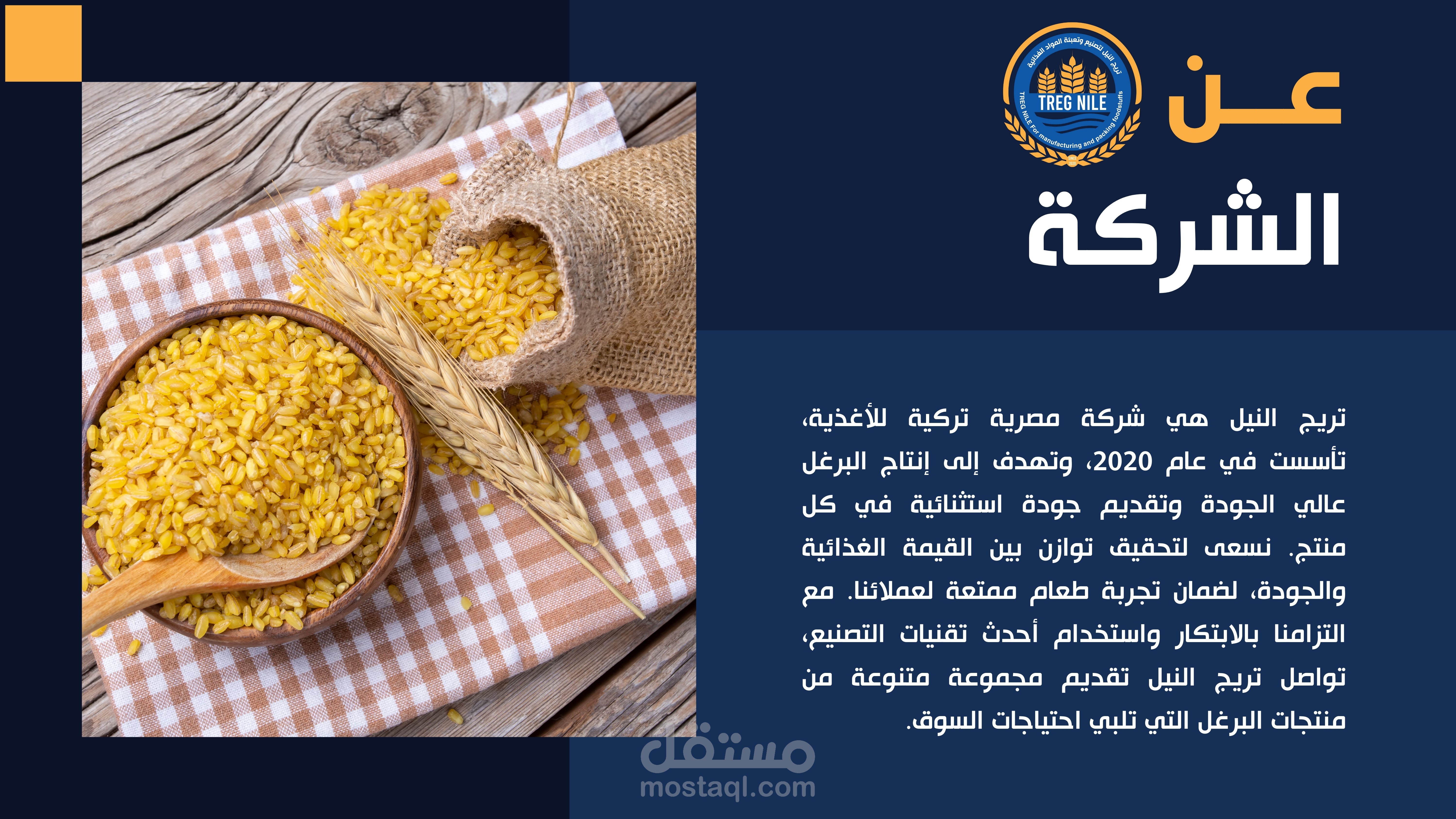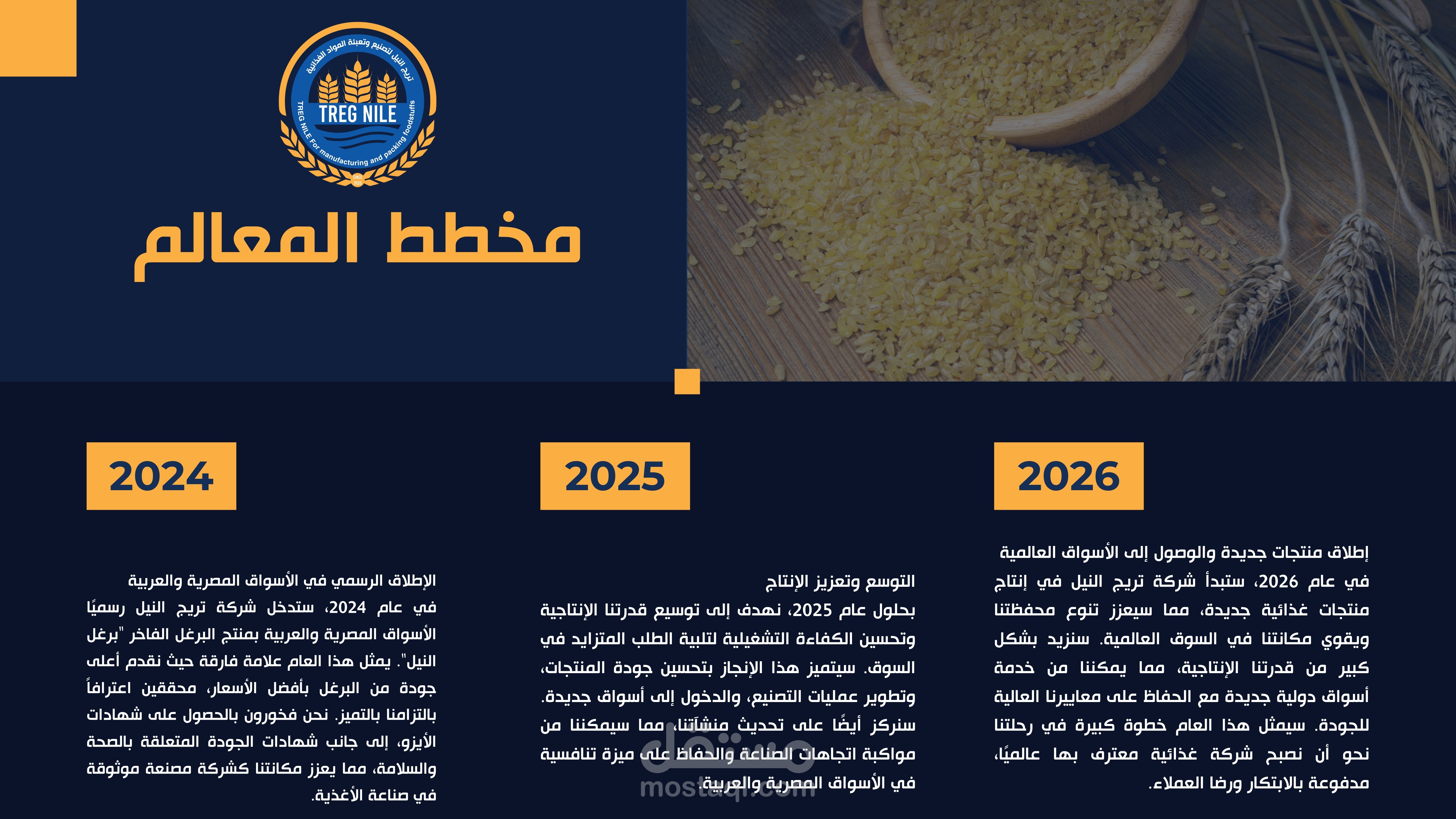 هوية كاملة لشركة تريج النيل لتصنيع و تعبئة المواد الغذائية بالاضافة لتصميم موقع الكتروني للشركة