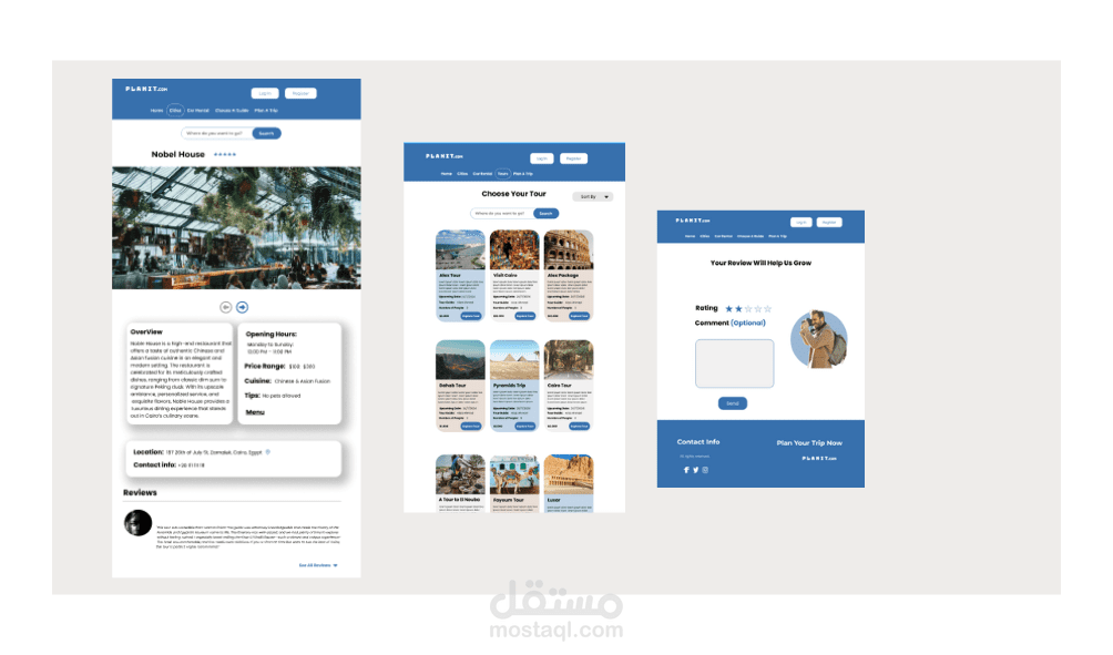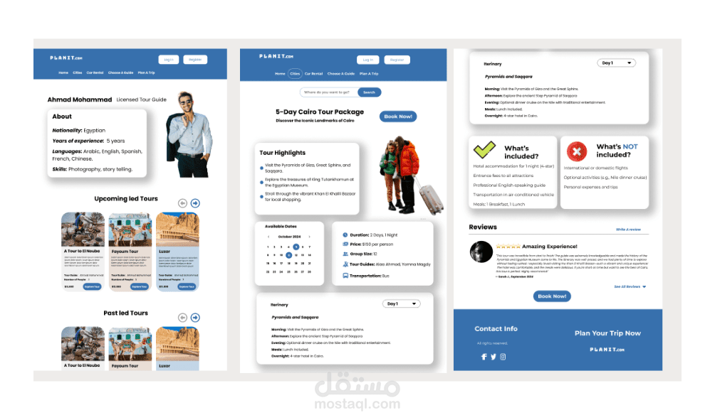 تصميم واجهة مستخدم (UI) متكاملة لجميع صفحات الموقع باستخدام Figma، مع التركيز على تجربة المستخدم (UX) لضمان سهولة التصفح والتنقل بسلاسة. يتميز التصميم بتناسق الألوان، اختيار خطوط أنيقة، واستخدام أيقونات مميزة لخلق تجربة مرئية جذابة ومريحة. كما تم الاهتمام بأدق التفاصيل لضمان تصميم احترافي يعكس هوية الموقع ويوفر تجربة استخدام ممتعة ومتوافقة مع احتياجات المستخدمين.