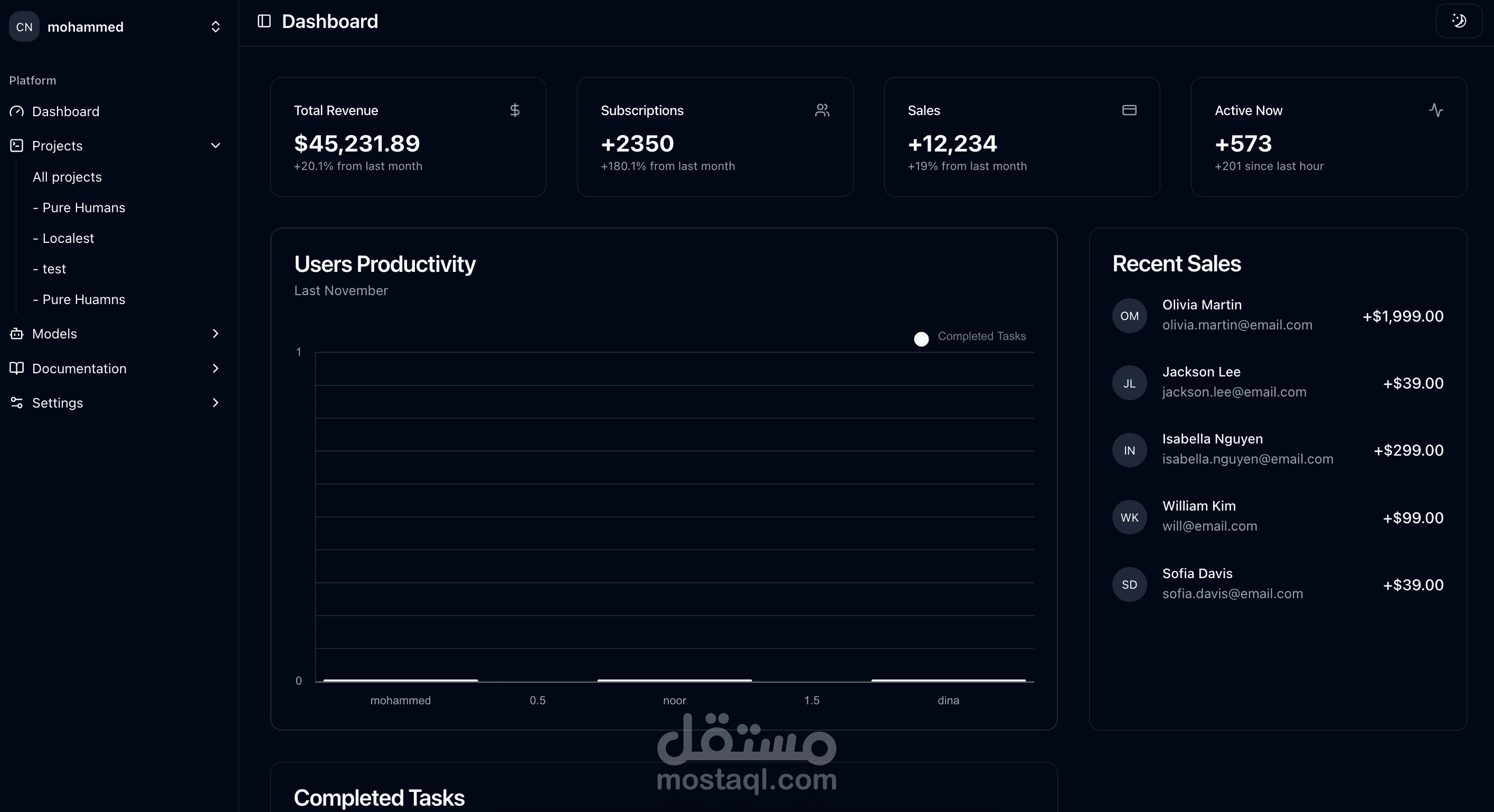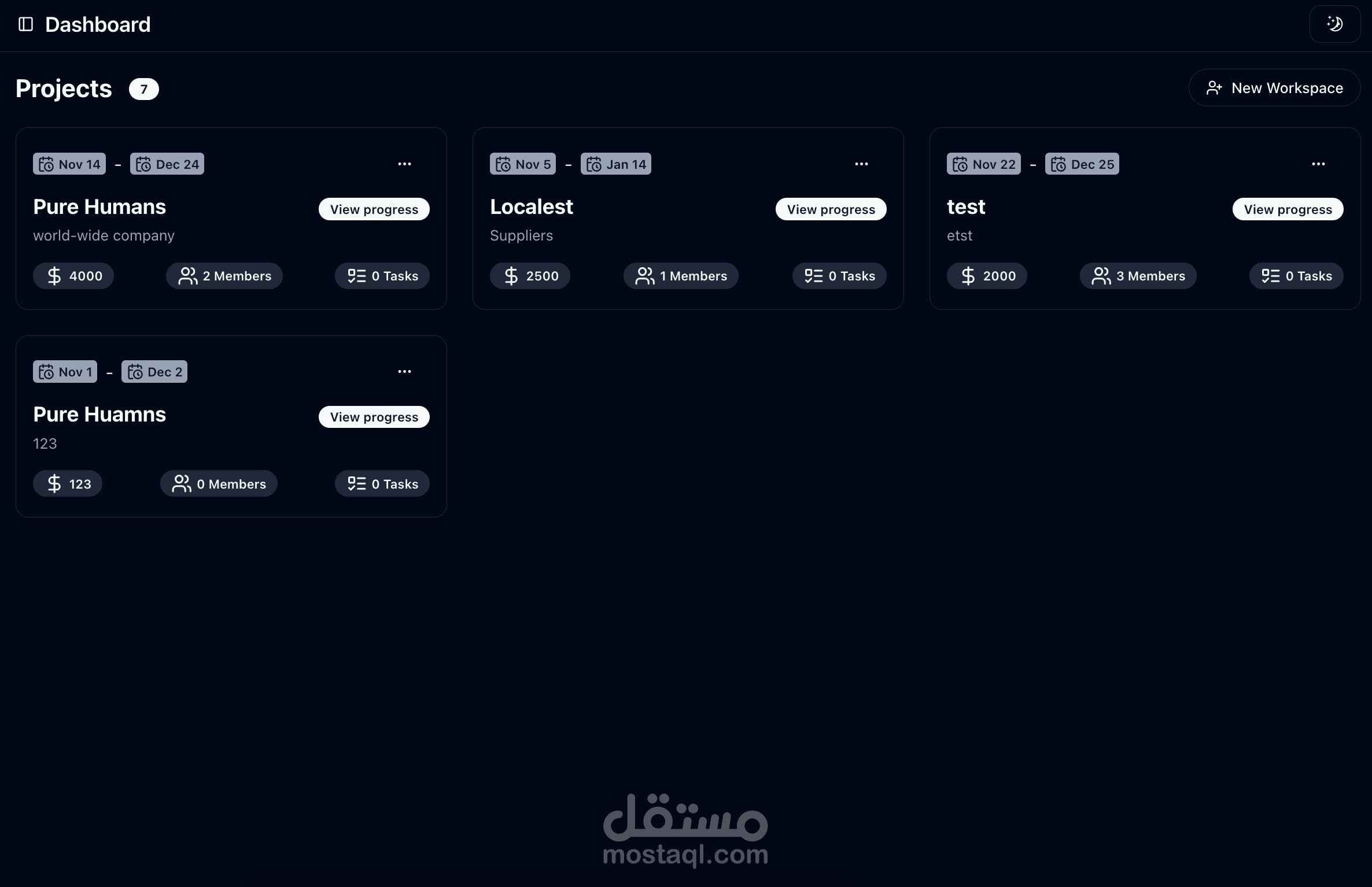 امكانية انشاء مشاريع خاصة وتتبع حالتها.