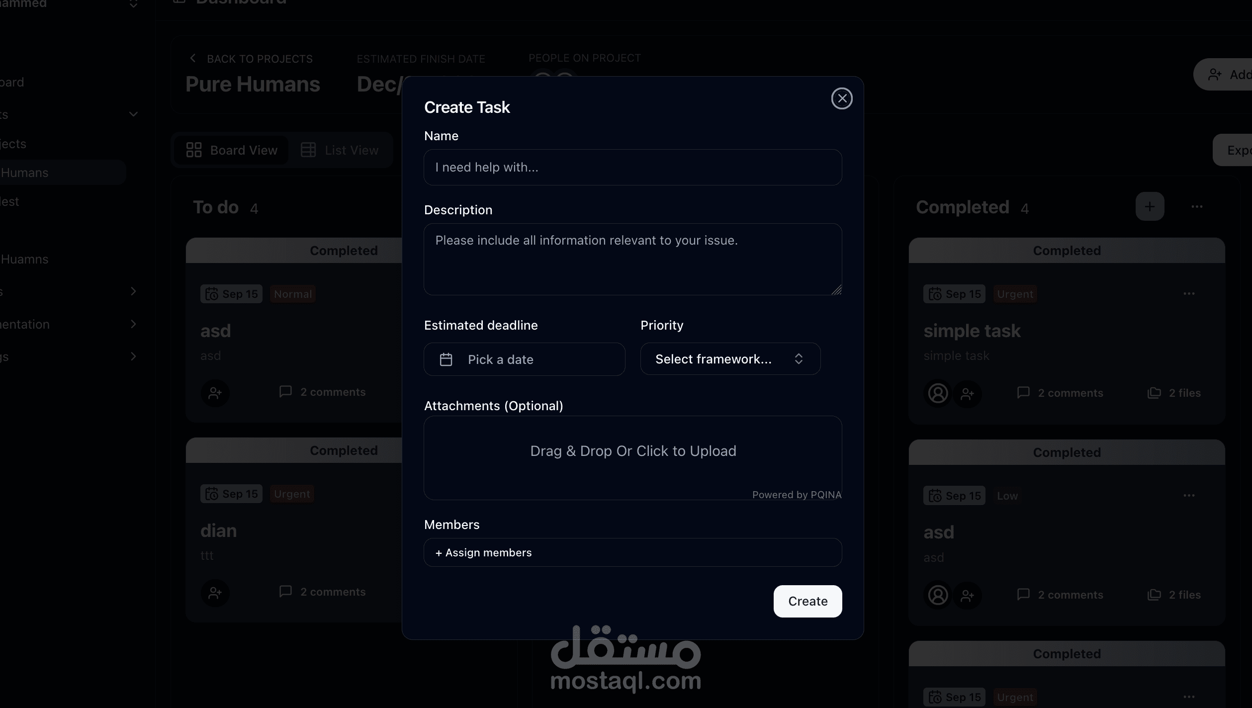 انشاء tasks وتعينها لأشخاص في داخل المشروع مع جميع خصائص ال task