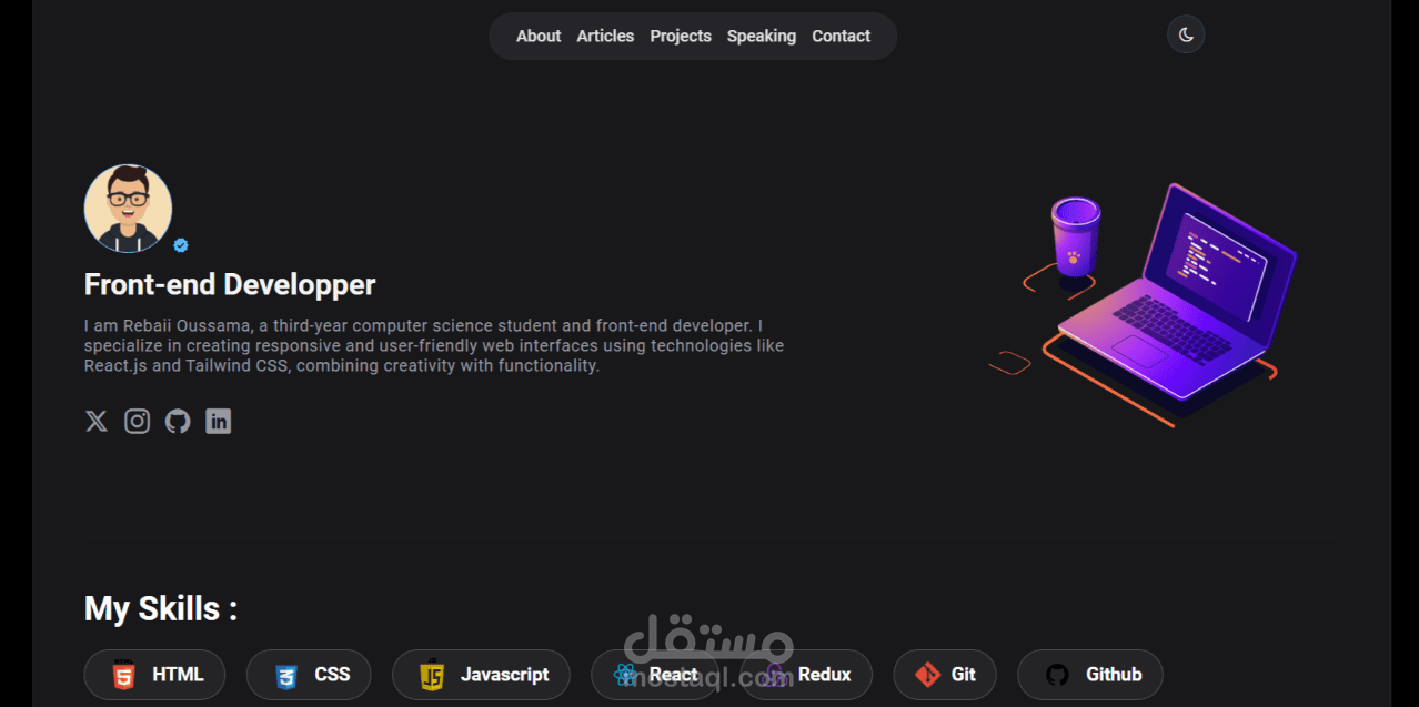 -المهارات التي اتقنها مثل : HTML,CSS,Javascript,React,Redux,Tailwind css