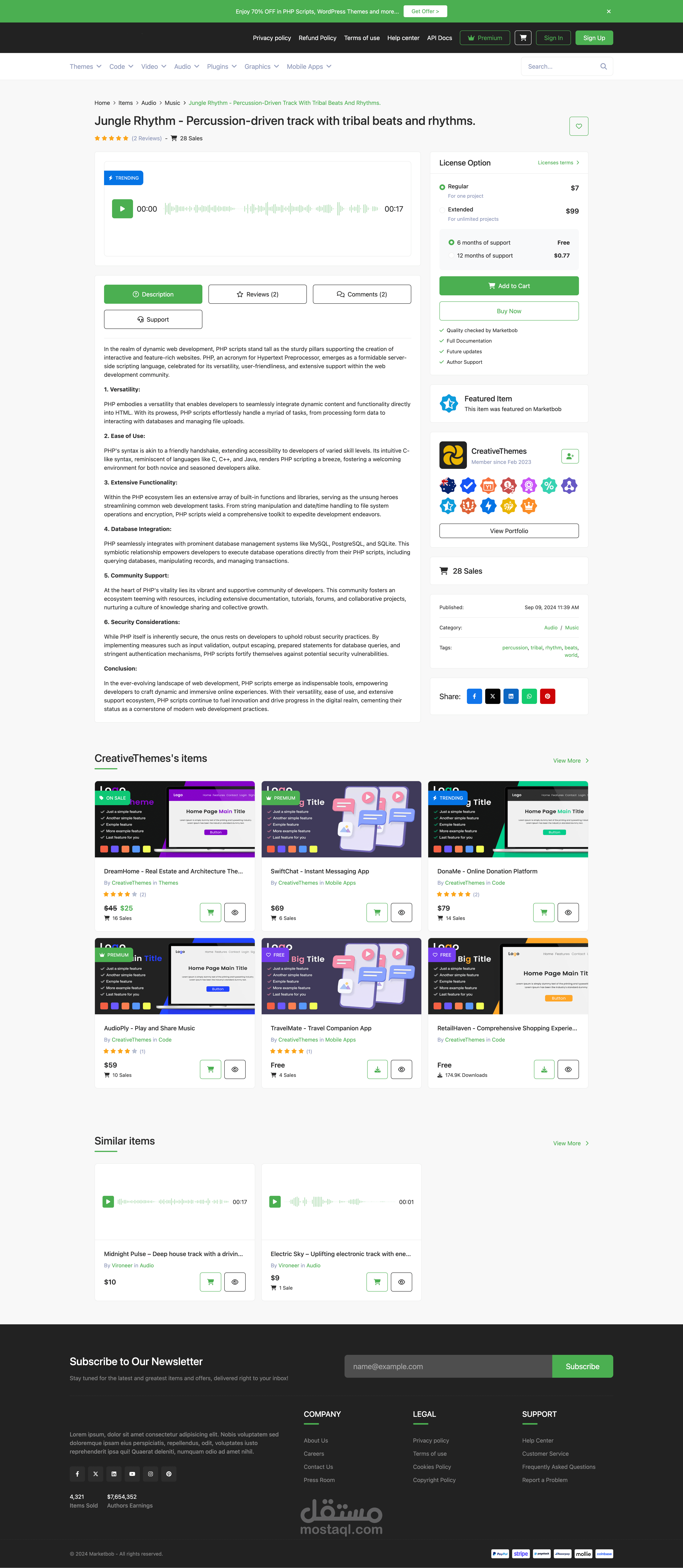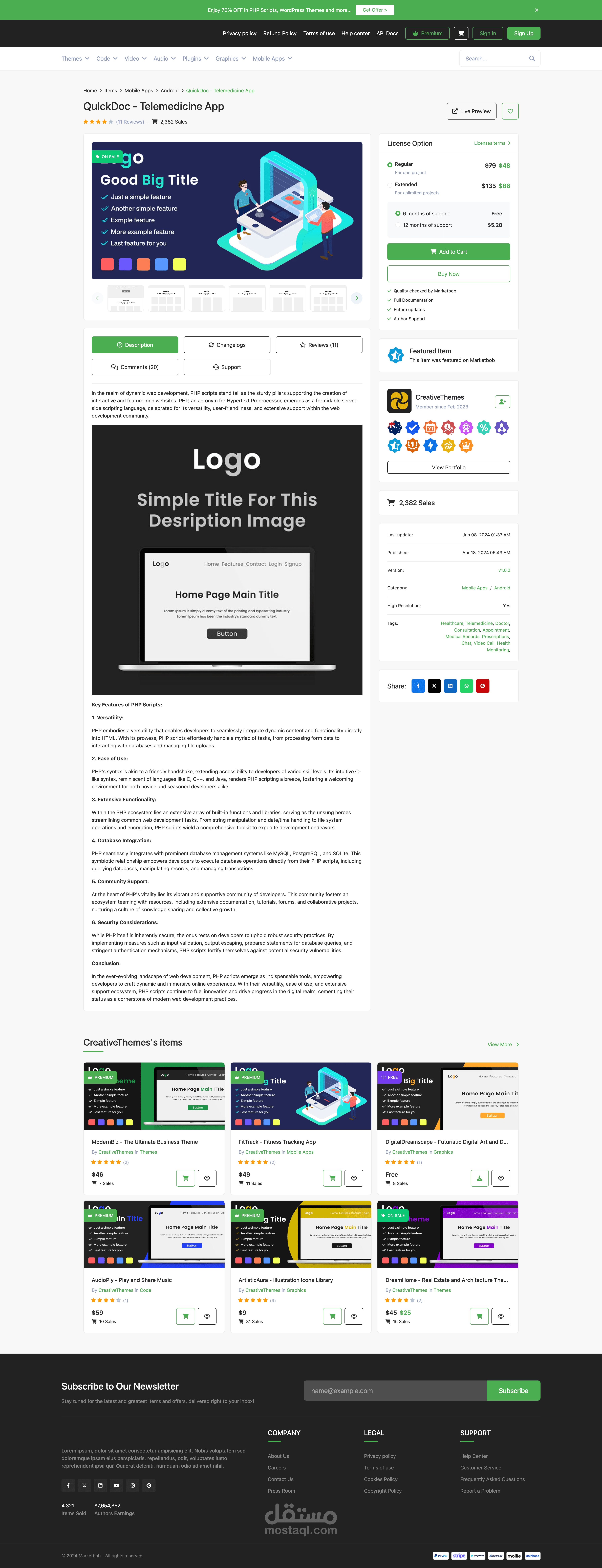 This PHP script is an advanced multi-vendor platform designed to create a thriving digital marketplace. It allows authors to register, upload, and sell various digital products, such as templates, plugins, PHP scripts, stock footage, music, audio, and graphics. With a seamless user experience and robust administrative tools, this script is ideal for building a professional marketplace for digital products.