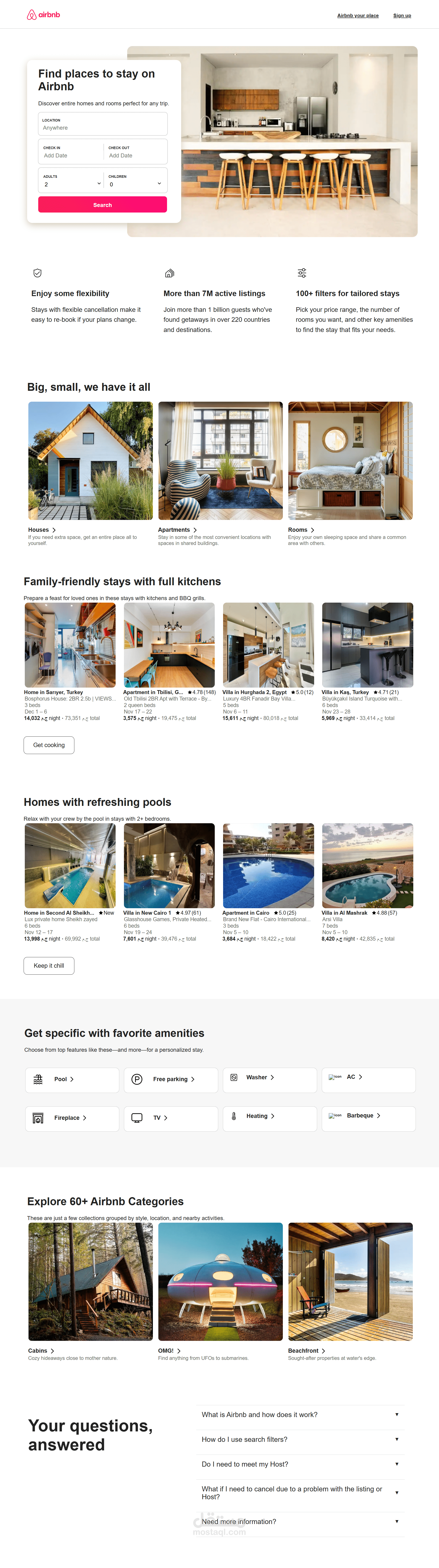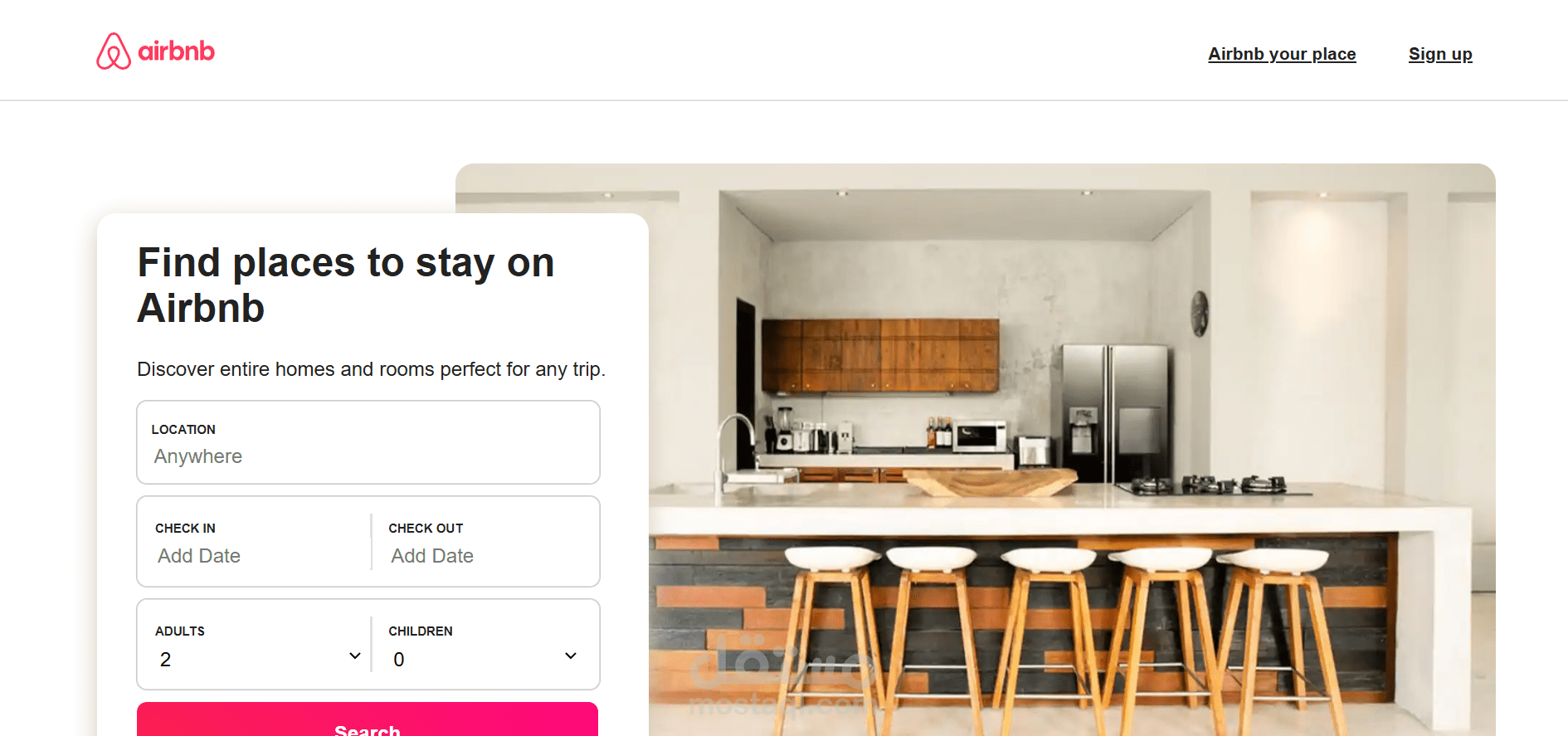 موقع ويب يربط الأشخاص الذين يبحثون عن أماكن إقامة مع أولئك الذين يقدمون مساحات فريدة، مثل المنازل والشقق.