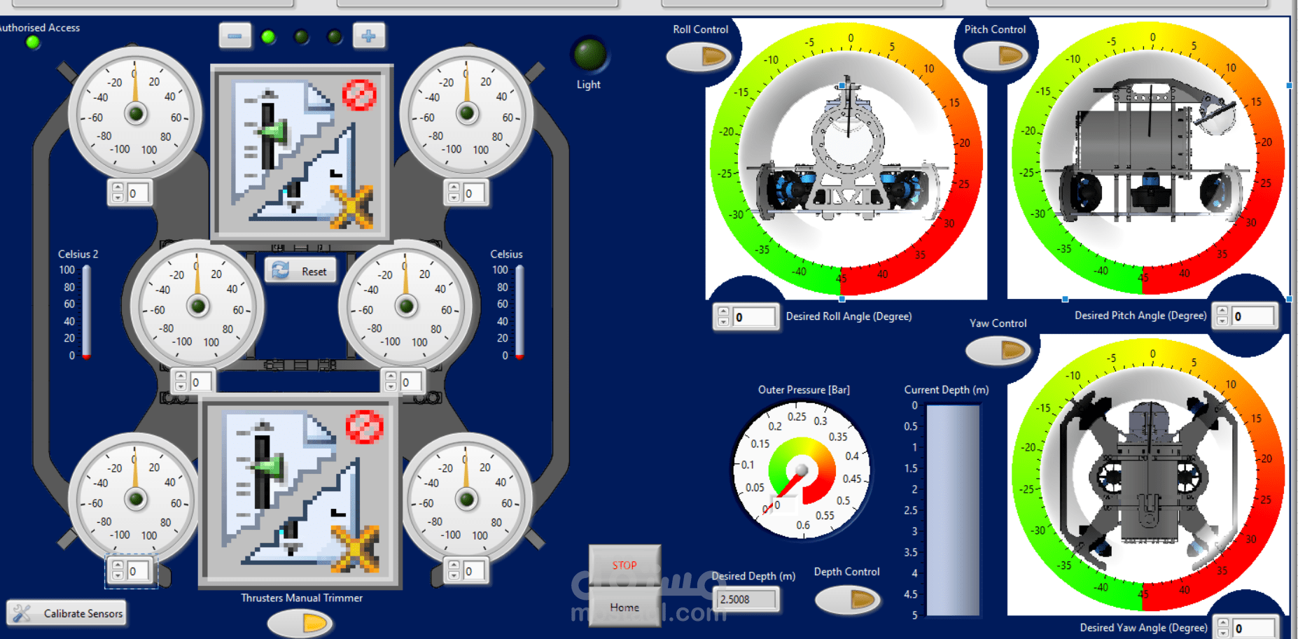 I have developed a desktop application using LabVIEW to Control a teathered ROV with gribers and fish eye camera controlled with MyRIO FPGA based on LabVIEW SW in RealTime operation.This ROV got six degree of freedom and its operation based on TCP/IP and UDP communication protocols to allow pilot to drive this ROV to do harch tasks under water.