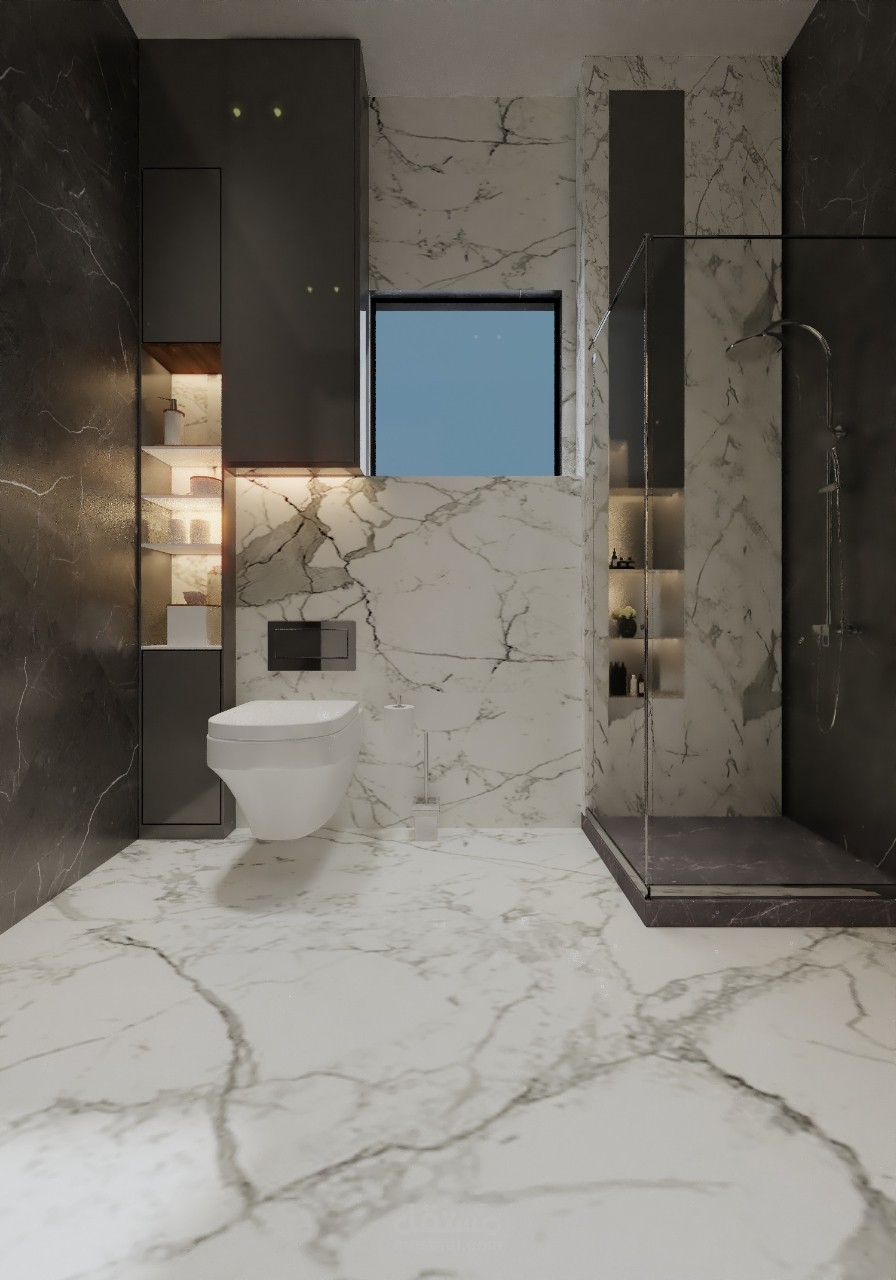 تصميم ديكور لحمام يتناسب مع المساحة والوظيفة