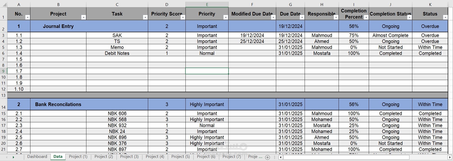 - ستكون نسبة الإنجاز هي متوسط نسبة الإنجاز لجميع المهام.