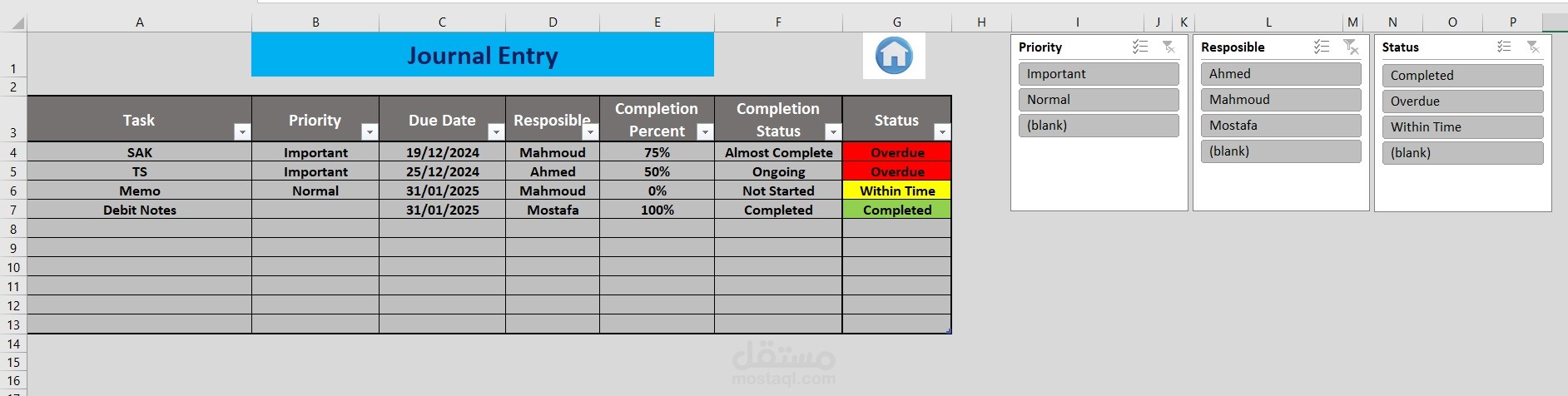• يتم حساب العدد الإجمالي للمهام على أساس الخلايا التي تحمل اسم مهمة.