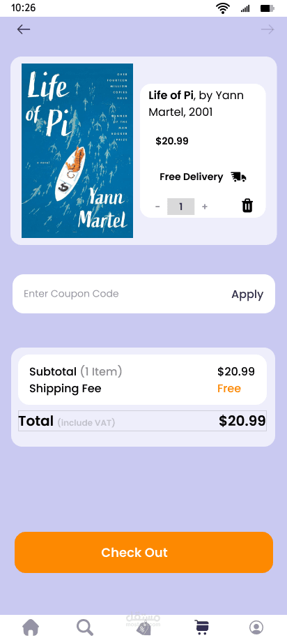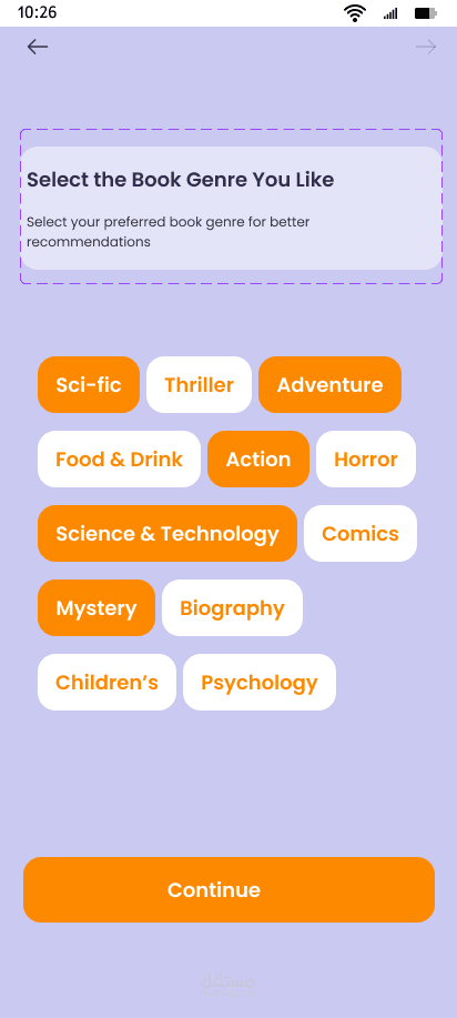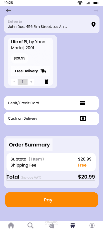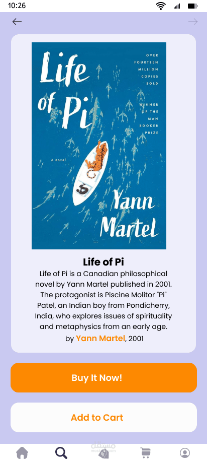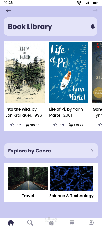 المشروع عبارة عن تصميم واجهة تطبيق إلكتروني يقدم خدمات لشراء الكتب. الموقع يسهل عملية شراء الكتب ويركز على تجربة المستخدم بشكل سهل ومريح.