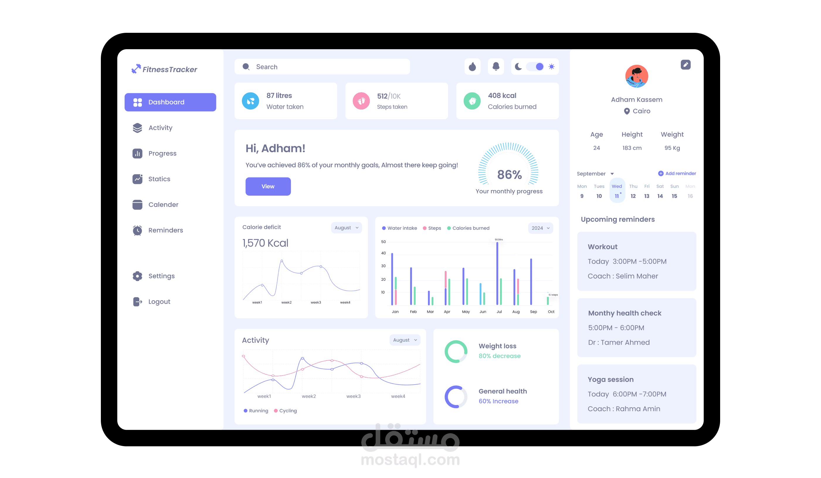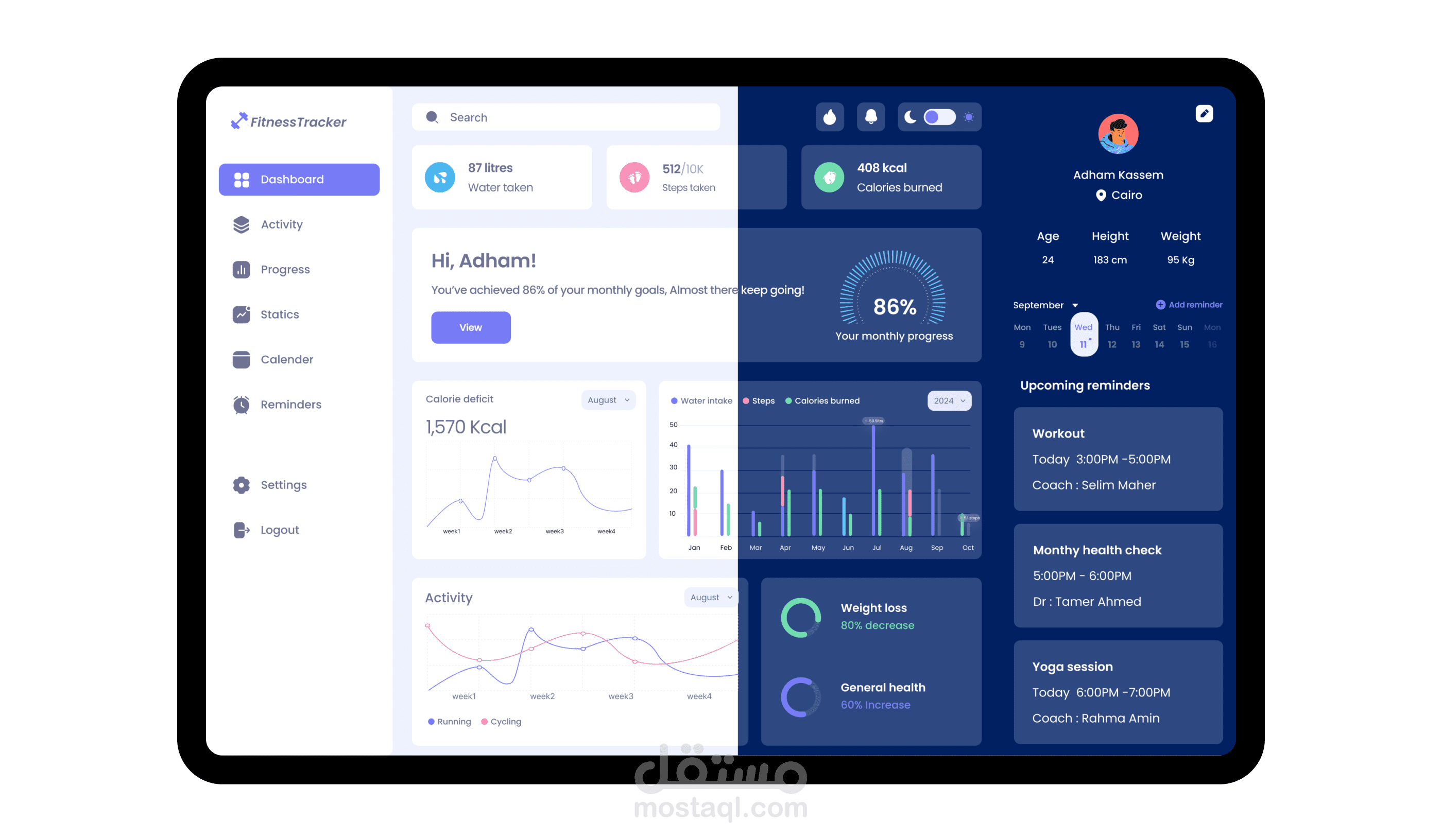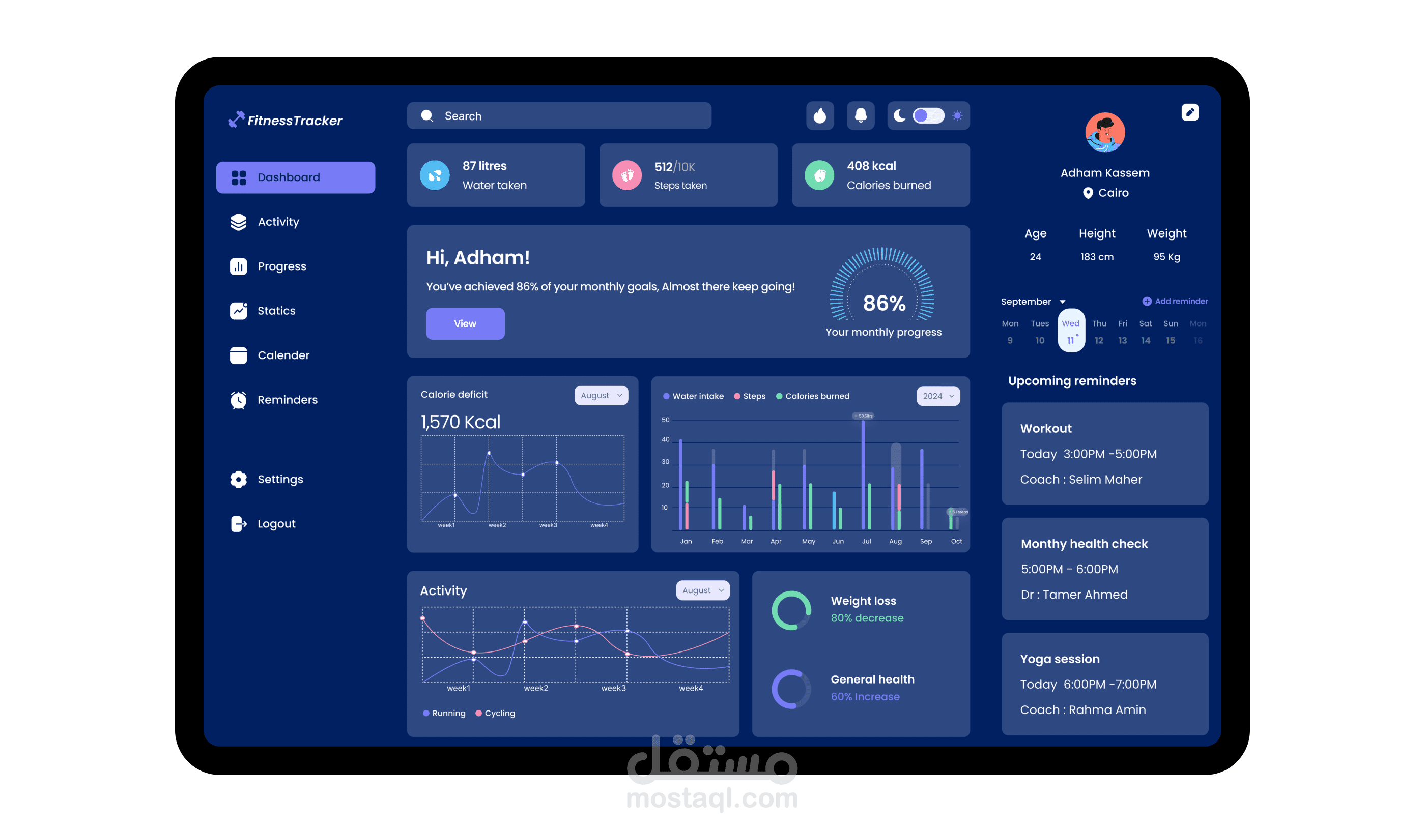 عرض إحصائيات الأنشطة اليومية (مثل الخطوات، حرق السعرات الحرارية، النوم).