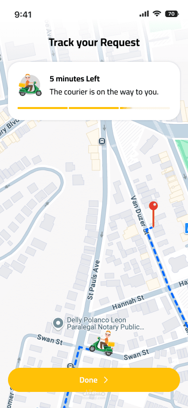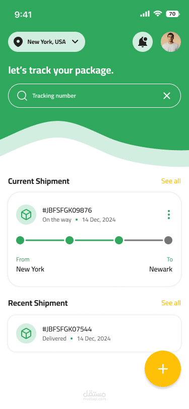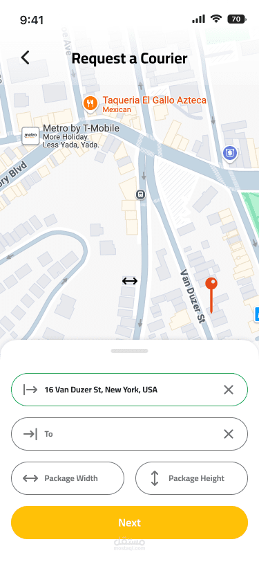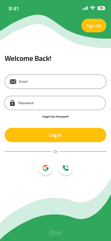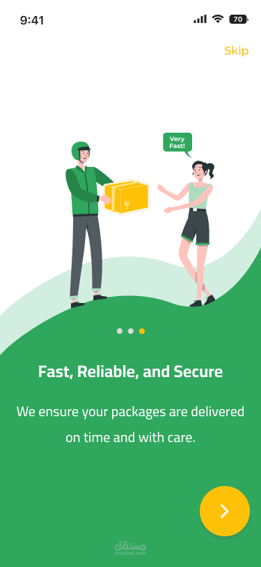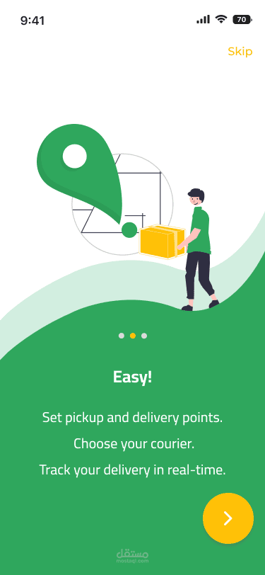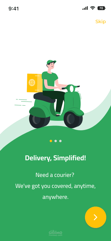 -اعتماد تصميم عصري يتماشى مع الهوية المرئية للتطبيق، مع ألوان مريحة ومناسبة لخدمة التوصيل.