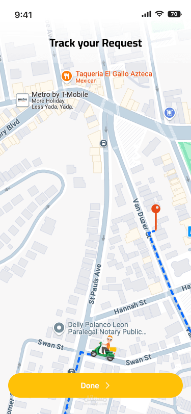 -تصميم شاشة تفاعلية تعرض مسار المندوب في الوقت الفعلي مع تقدير وقت الوصول