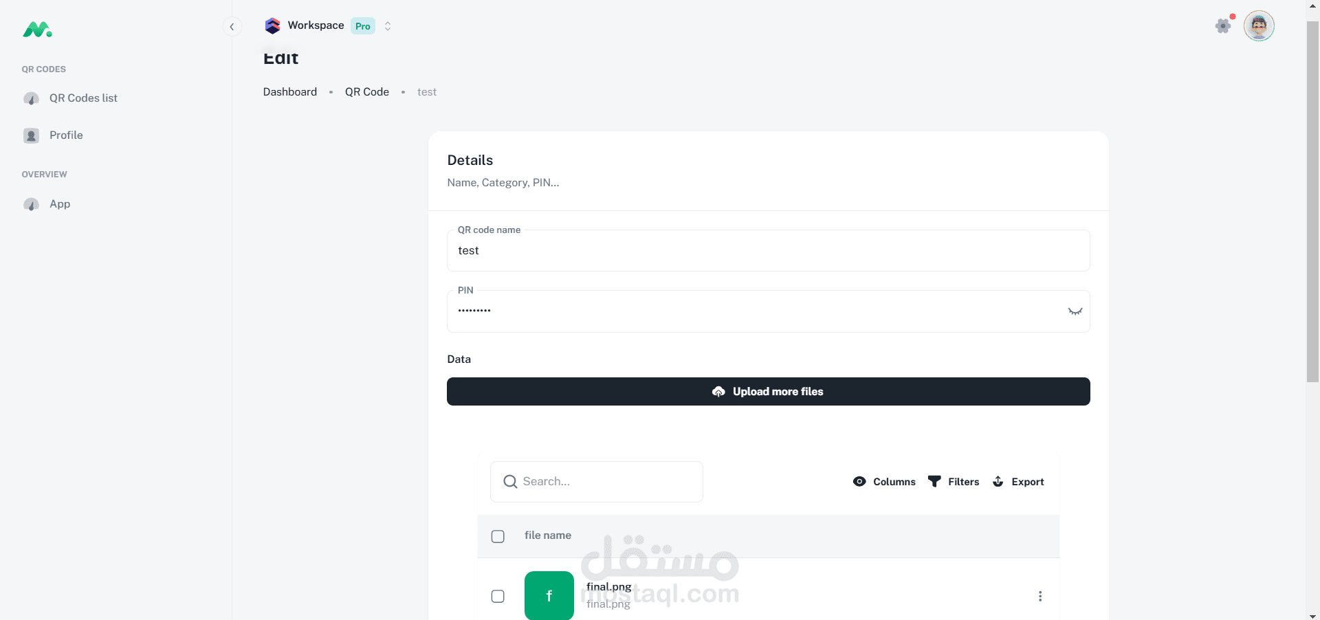 إنشاء أكواد QR ديناميكية قابلة للتخصيص مع إمكانية تحديد كلمة مرور فريدة لكل كود.