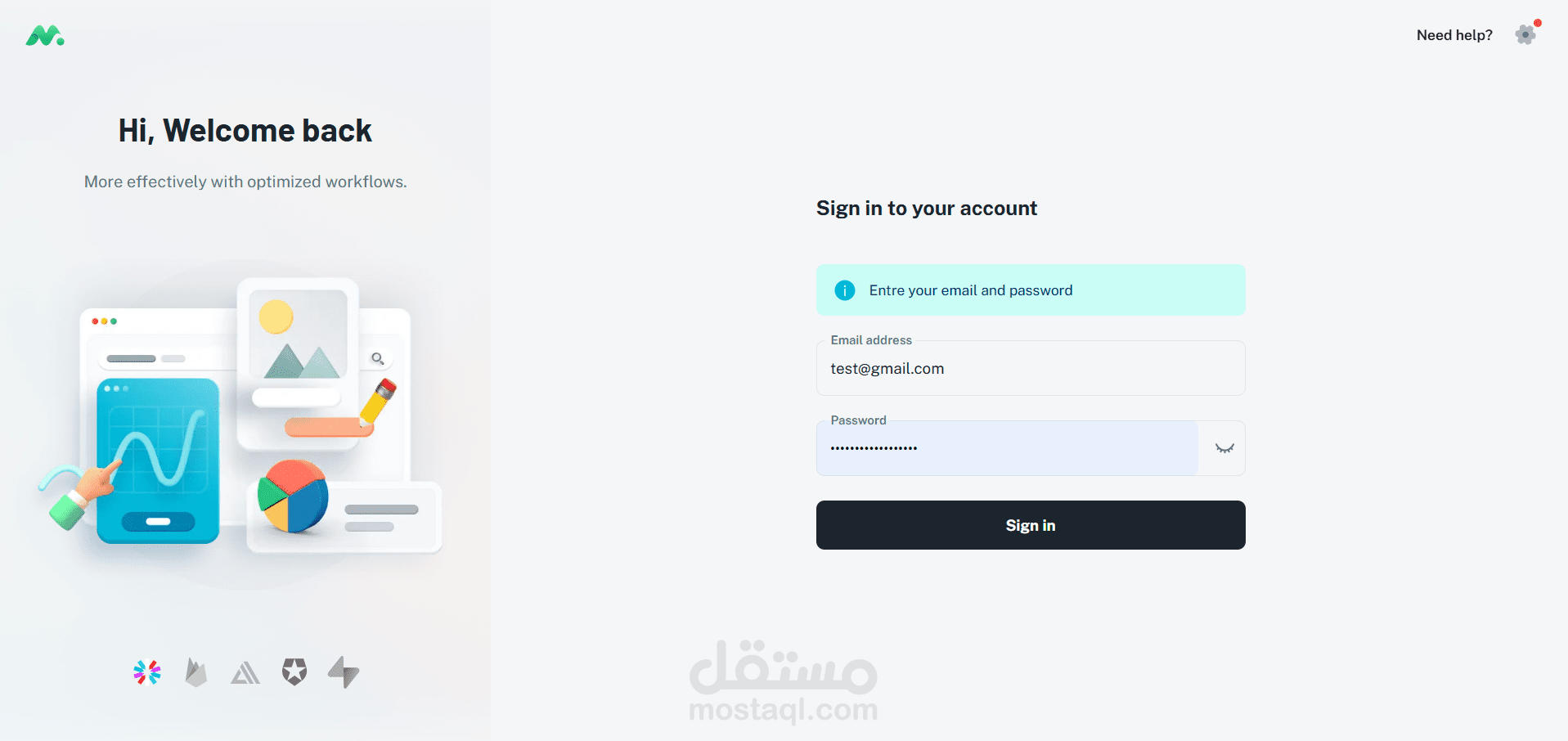 عند مسح الكود QR، يتم توجيه المستخدم إلى موقعنا الإلكتروني حيث يتم طلب إدخال كلمة المرور.