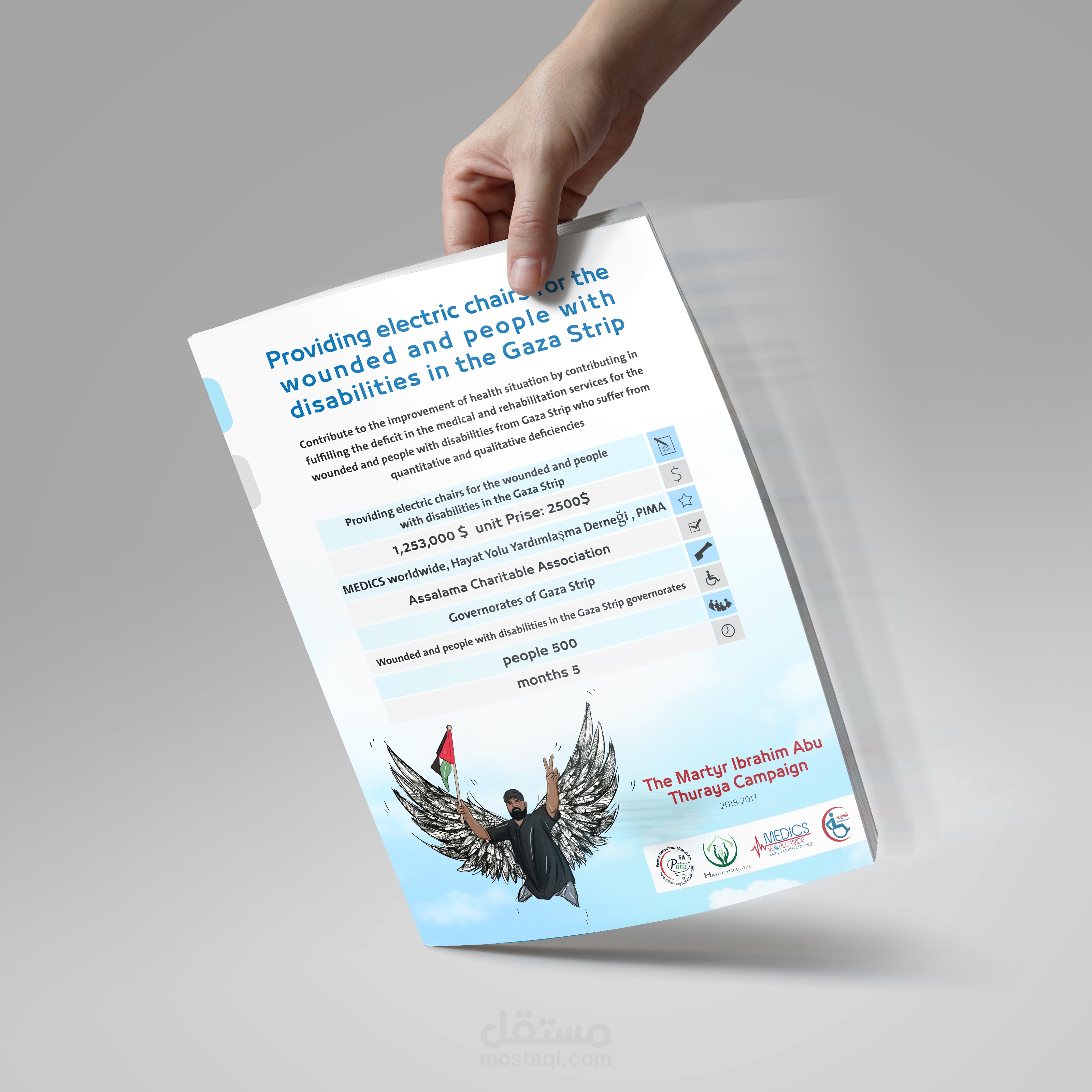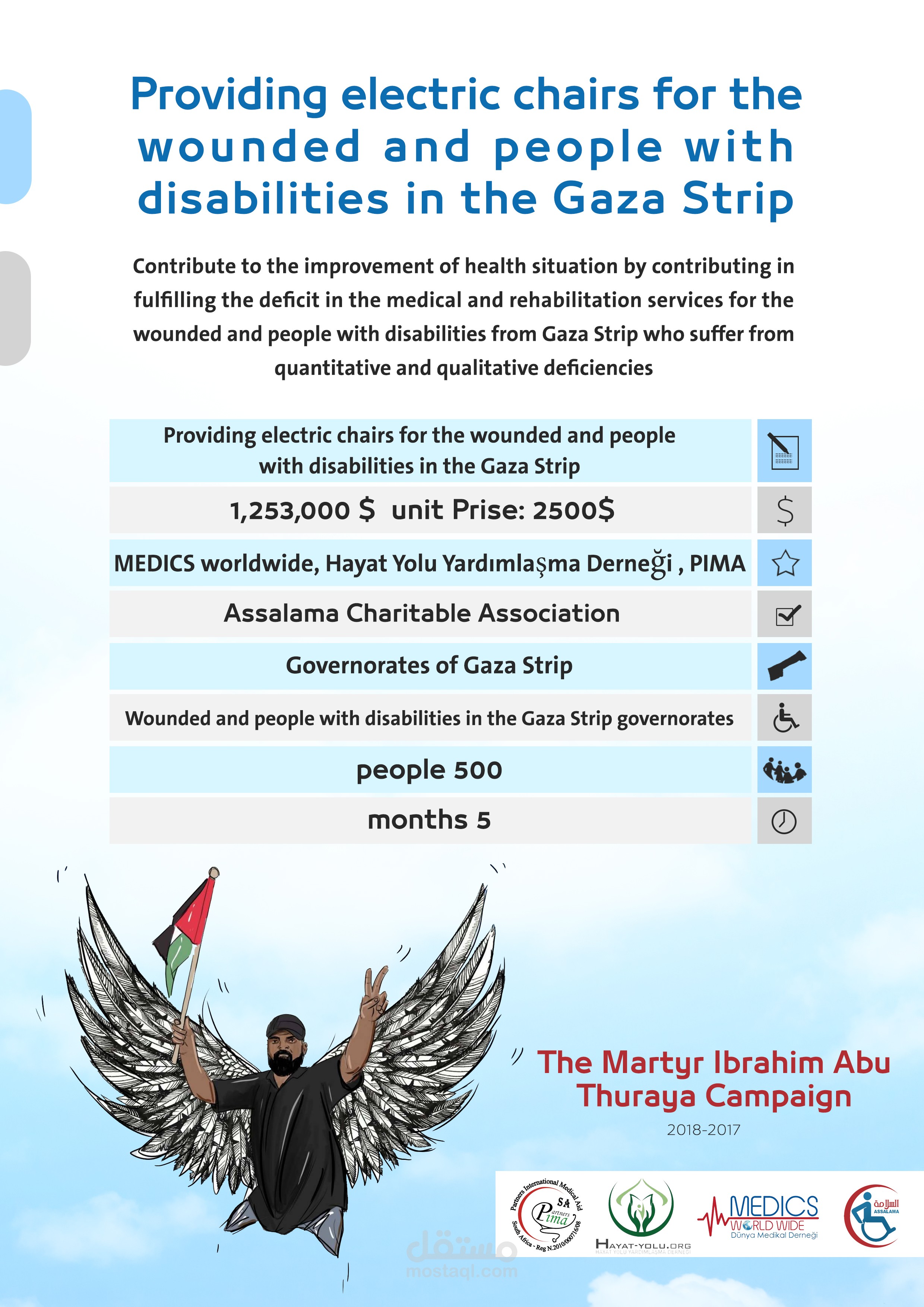 Contribute to the improvement of health situation by contributing in fulfilling the deficit in the medical and rehabilitation services for the wounded and people with disabilities from Gaza Strip who suffer from quantitative and qualitative deficiencies