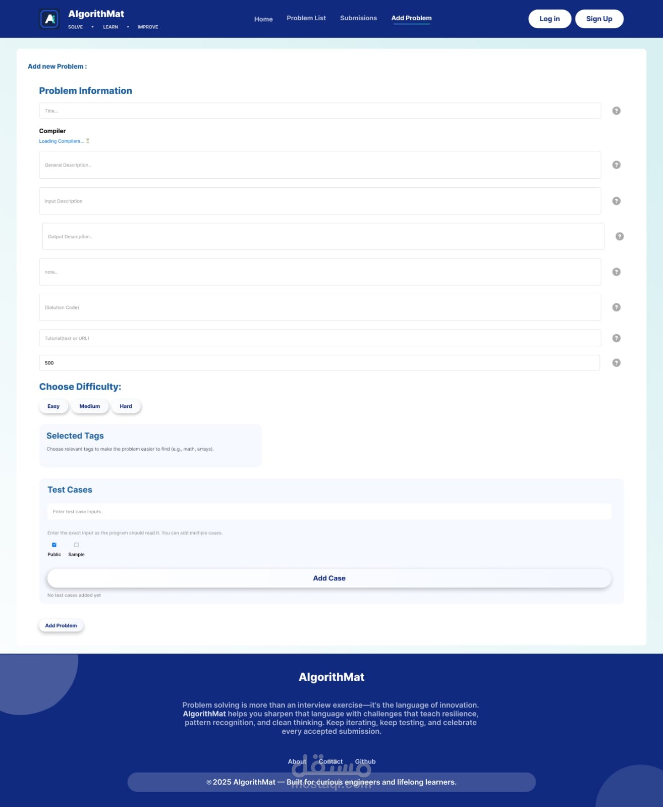 This platform is an interactive problem-solving website designed for learners and programmers who want to practice, understand, and master algorithms in a practical, hands-on way. It combines education, coding, and analytics to make algorithm learning both scientific and engaging.