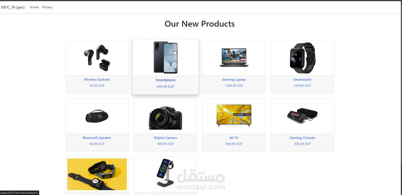 online-store website using MVC architecture fetching the data from a local database and displaying the items and sperated the item details in another page each