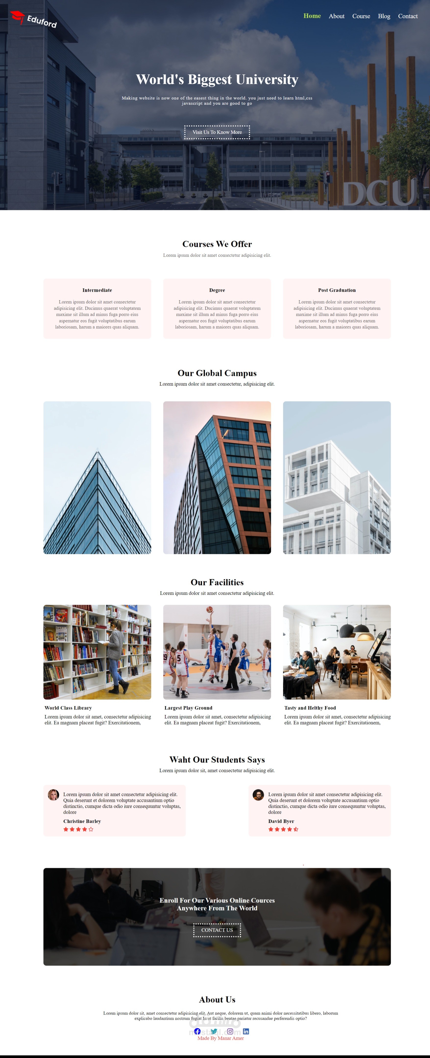 هذا التصميم عبارة عن واجهة موقع إلكتروني لجامعة تعليمية.