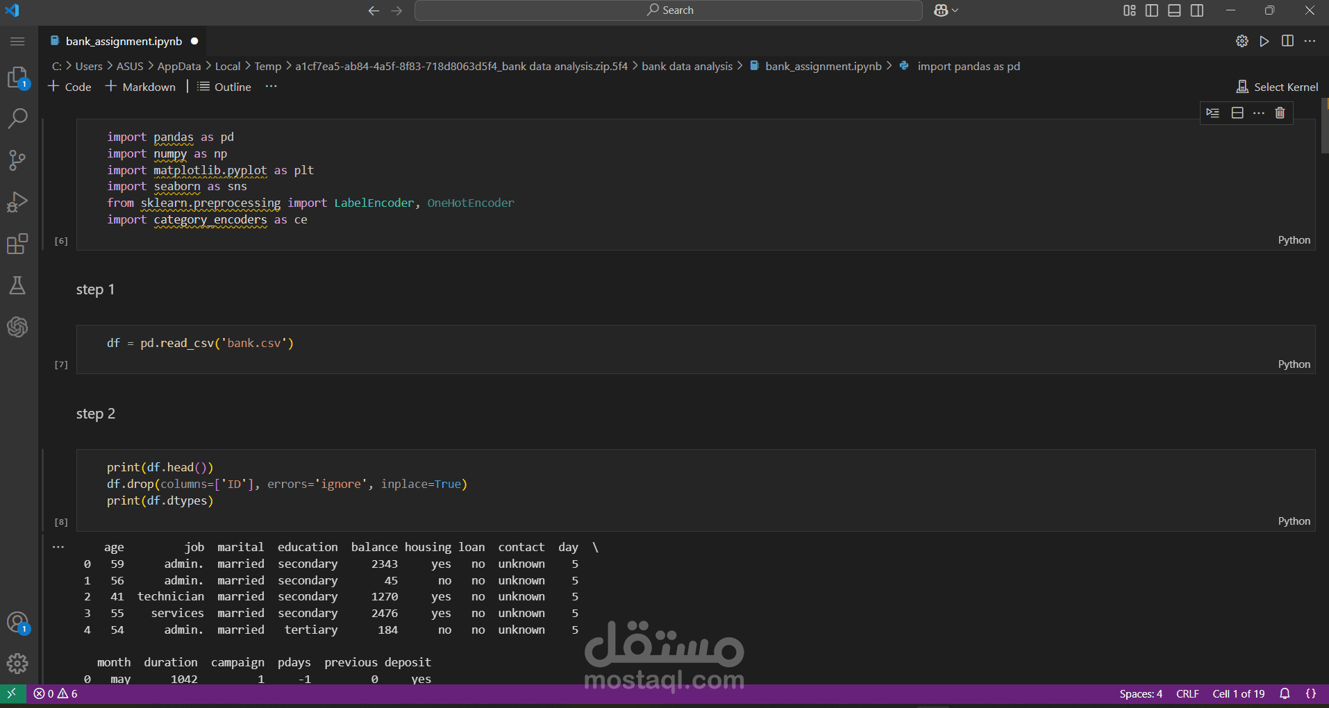 Data Exploration: Loaded a CSV file, displayed samples, dropped the ID column, checked data types, and converted categorical features.