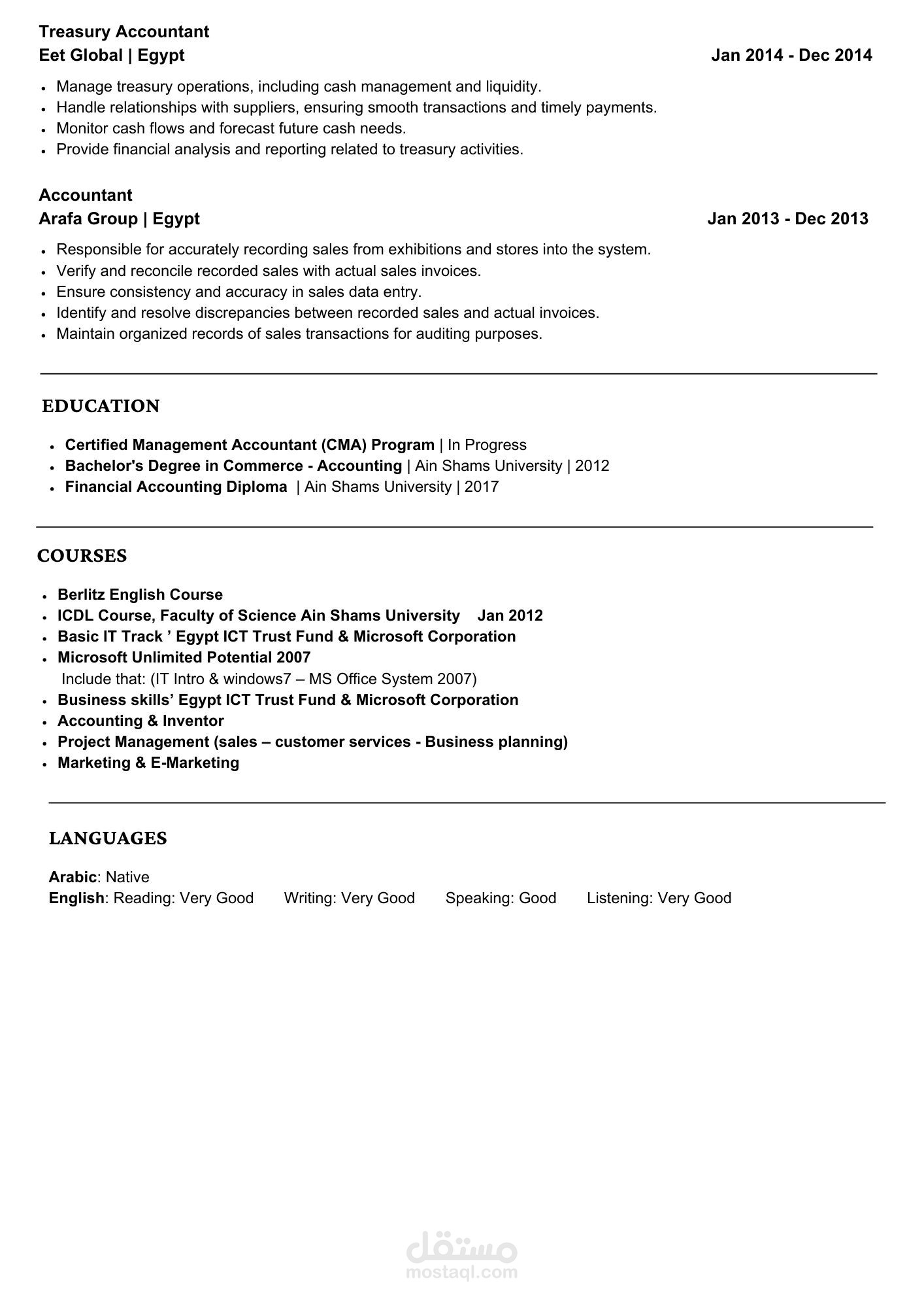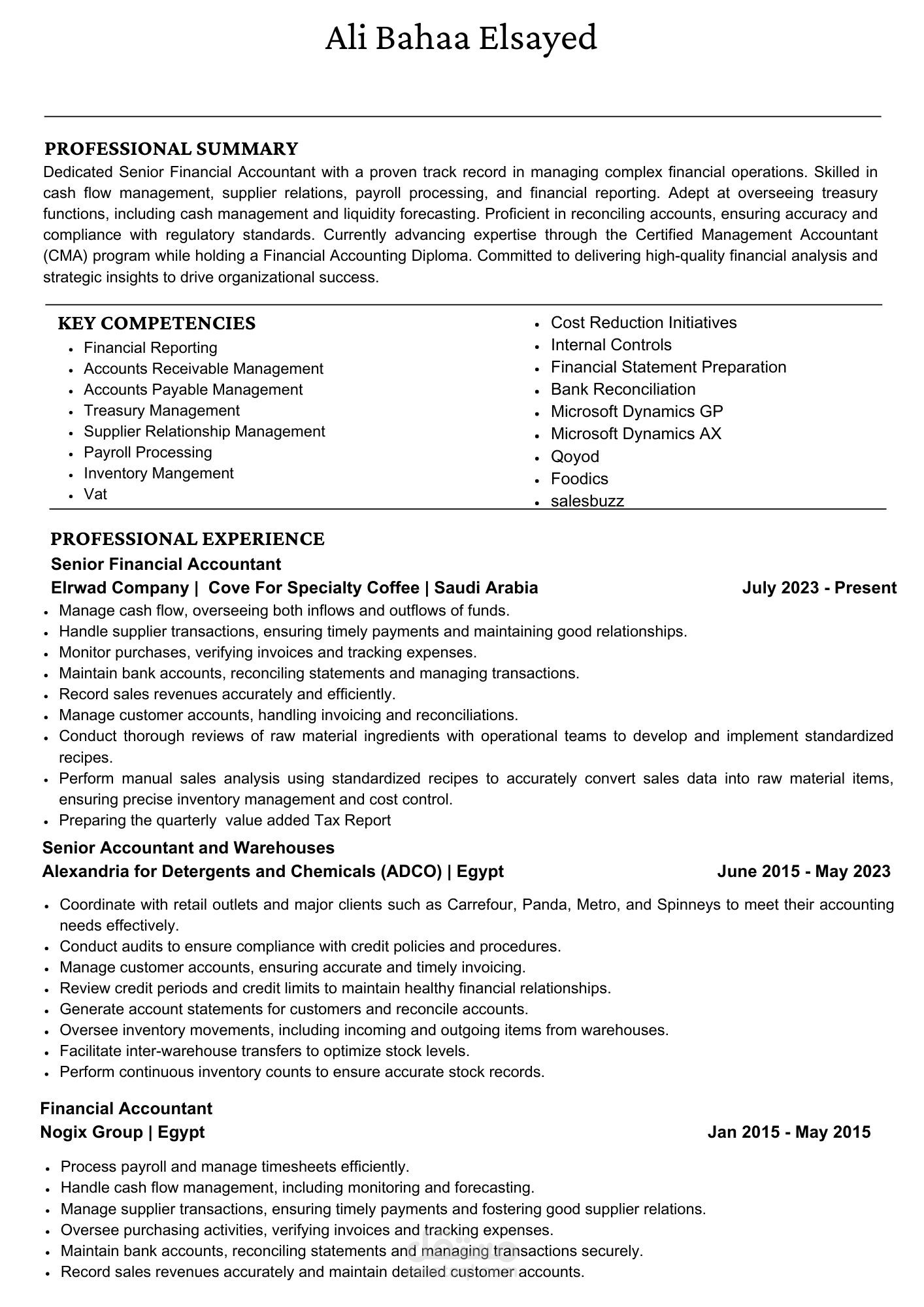 •توافق تام مع أنظمة ATS لضمان اجتياز الفلترة الإلكترونية.