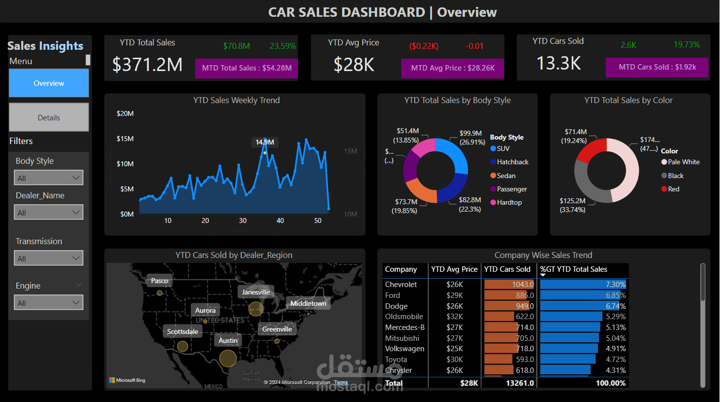 YTD Total Sales by Body Style: Breakdown of total sales by various car body styles.
