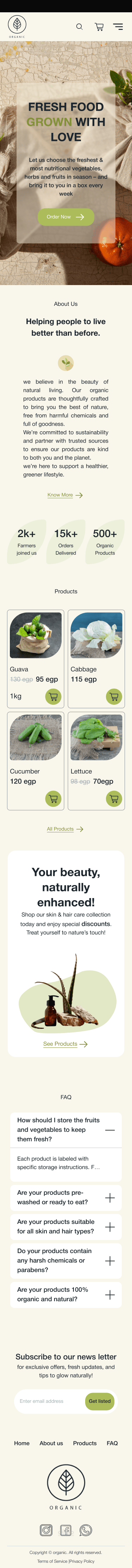 منصة إلكترونية لبيع المنتجات العضوية)Organic Food)، توفر فواكه، خضروات، ومنتجات طبيعية تُزرع وتُنتج بطرق صحية وآمنة دون استخدام مواد كيميائية أو مبيدات.