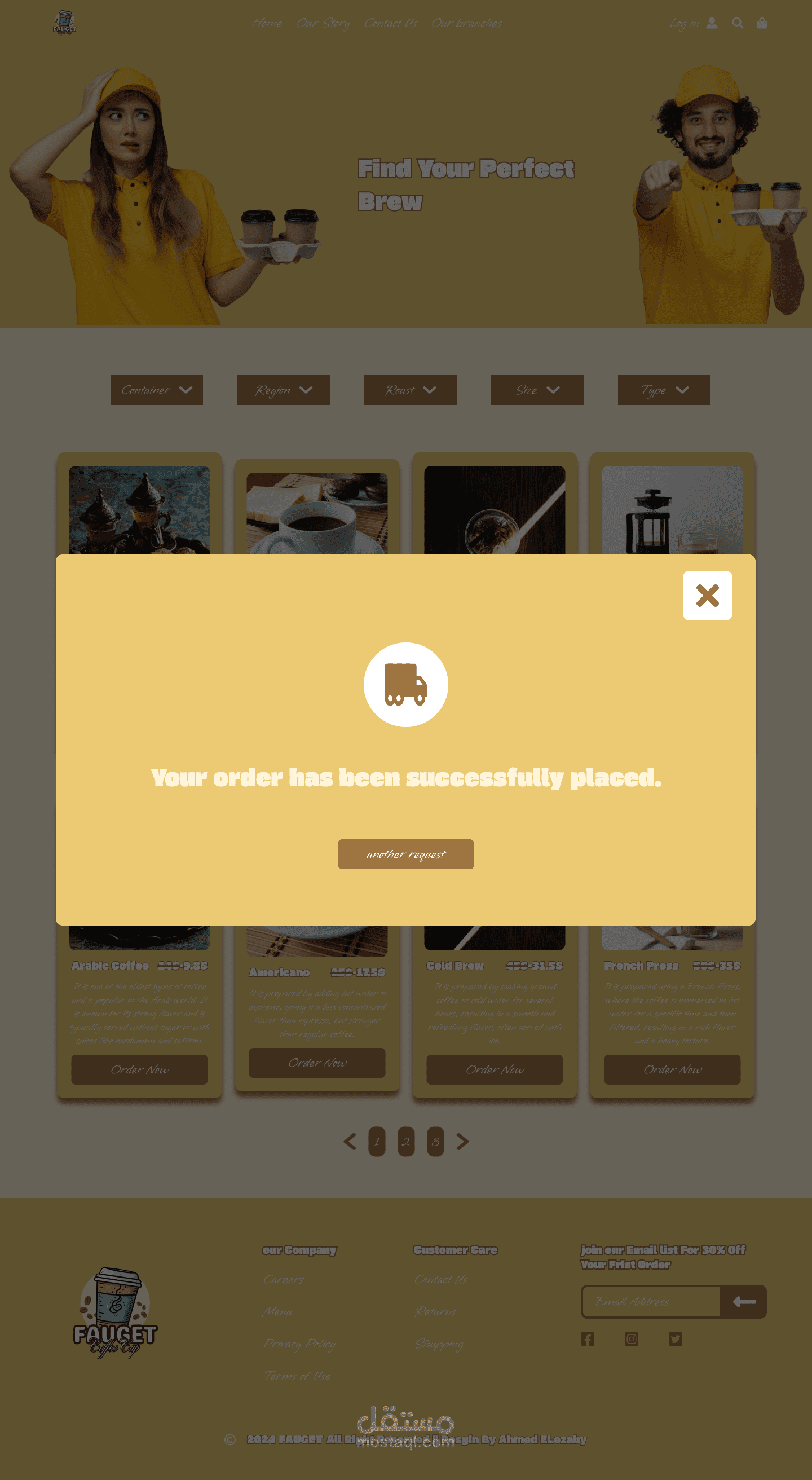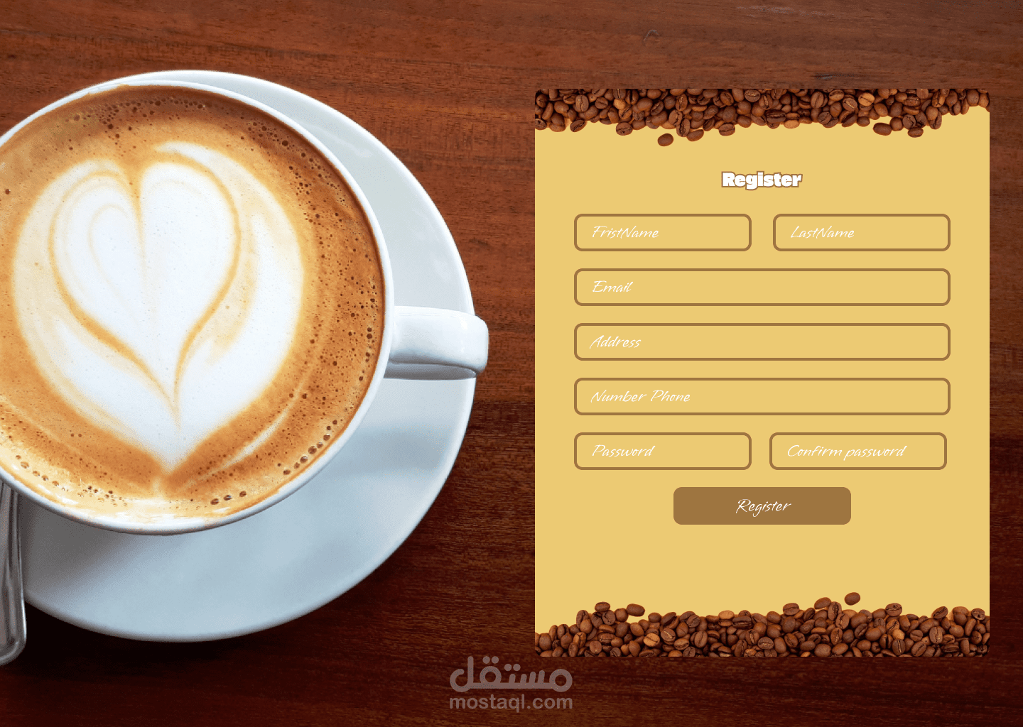 قسم تمهيدي: تصميم جذاب يتضمن صور قهوة ورسالة تسويقية مع زر دعوة للإجراء.