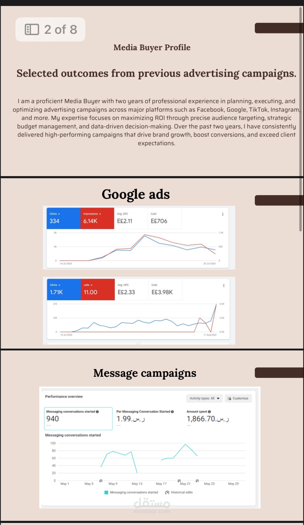 I am a proficient Media Buyer with two years of professional experience in planning, executing, and optimizing advertising campaigns across major platforms such as Facebook, Google, TikTok, Instagram, and more. My expertise focuses on maximizing ROI through precise audience targeting, strategic budget management, and data-driven decision-making. Over the past two years, I have consistently delivered high-performing campaigns that drive brand growth, boost conversions, and exceed client expectations.
