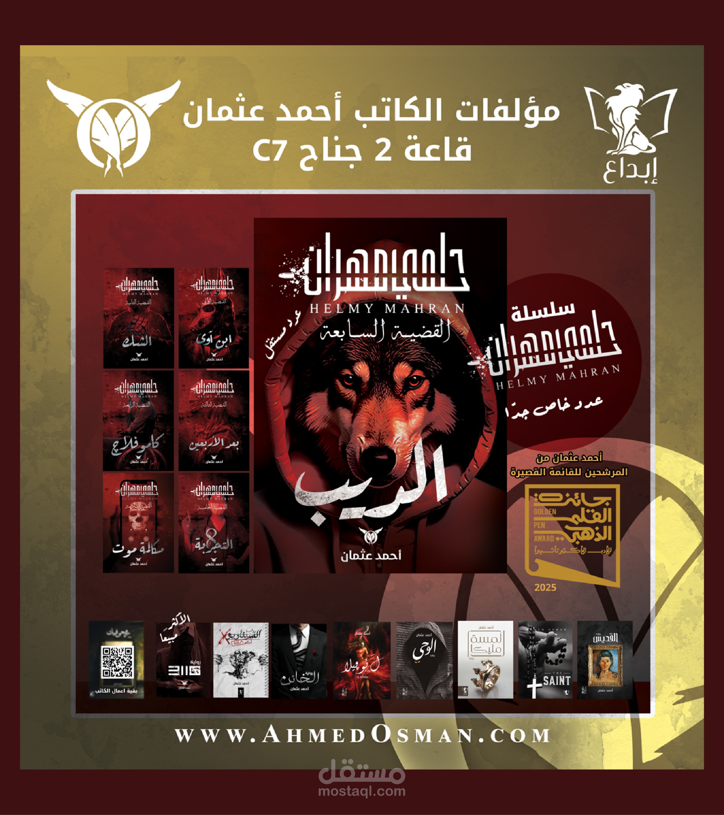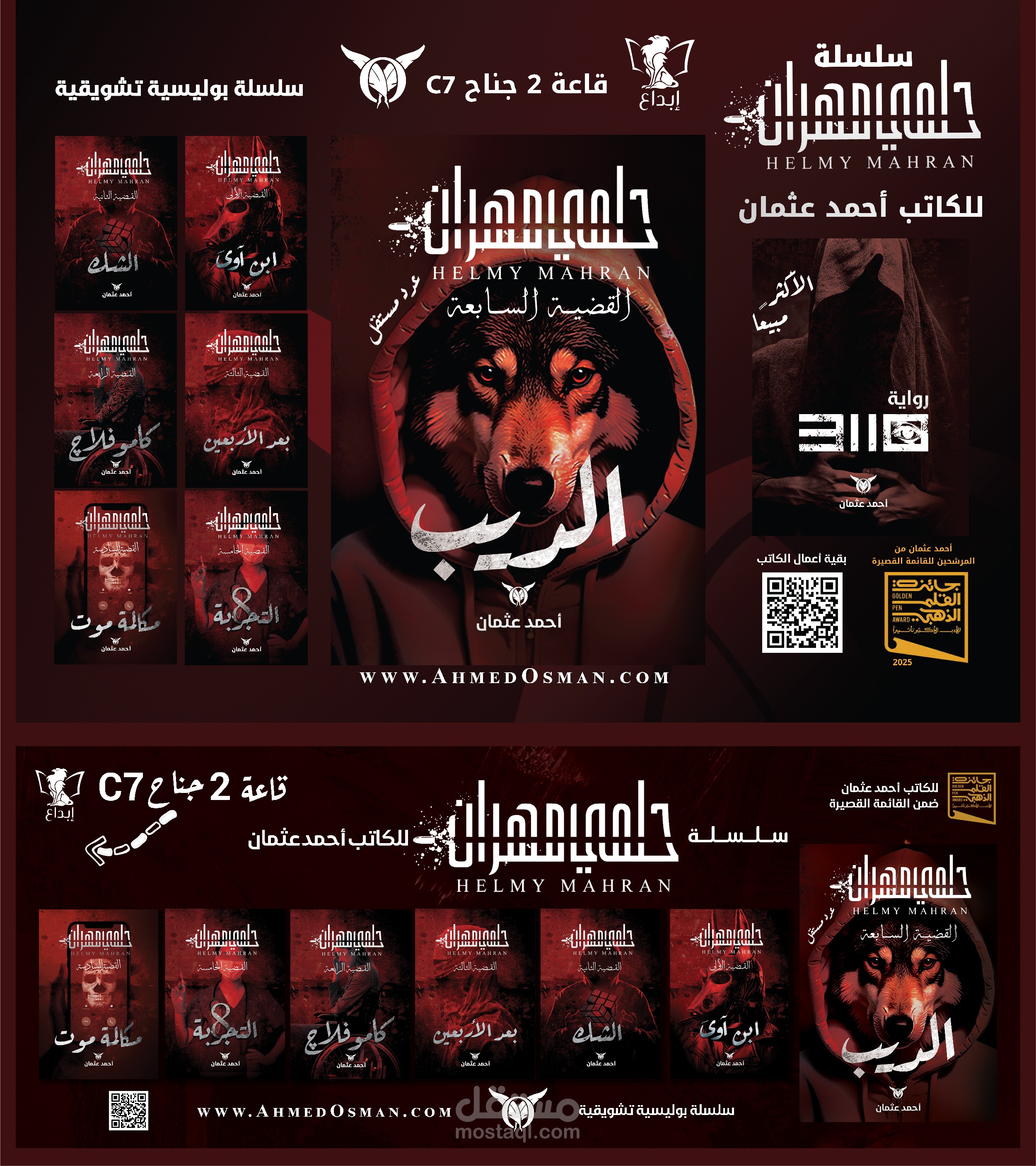 في مشروع "الديب"، صممت غلاف وبوسترات لرواية الجريمة والغموض "الديب"، الجزء السابع من سلسلة "حلمي مهران" للكاتب أحمد عثمان، المعروضة في معرض القاهرة الدولي للكتاب 2025.