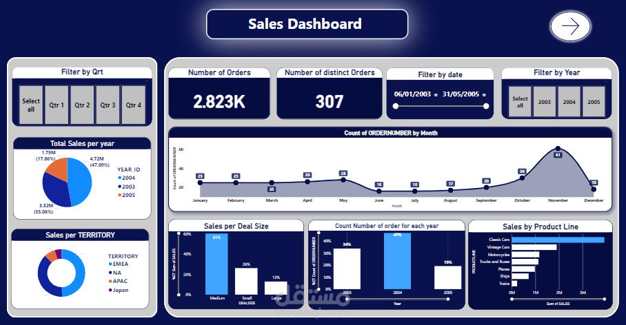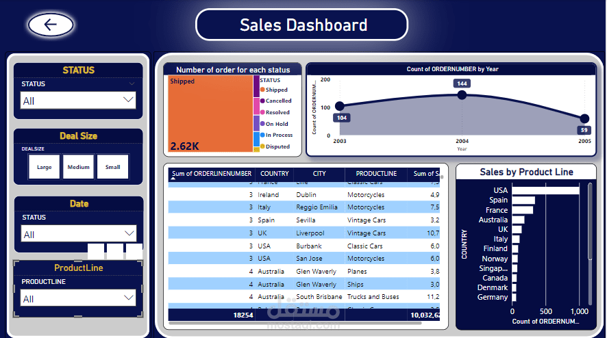 لوحة تحكم المبيعات باستخدام Power BI