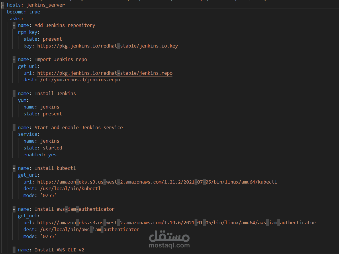 أتمتة المهام: كانت Ansible جزءًا أساسيًا في المشروع، حيث استخدمتها لأتمتة إعداد الخوادم، وتثبيت البرمجيات، وضبط الإعدادات لتقليل التكرار وتحسين الكفاءة.