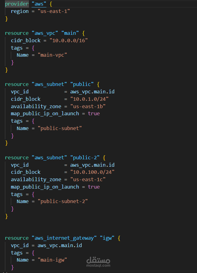إدارة البنية التحتية ككود: استخدمت Terraform لتوفير بيئة آلية يمكن إعادة إنشائها بسهولة في أي وقت.