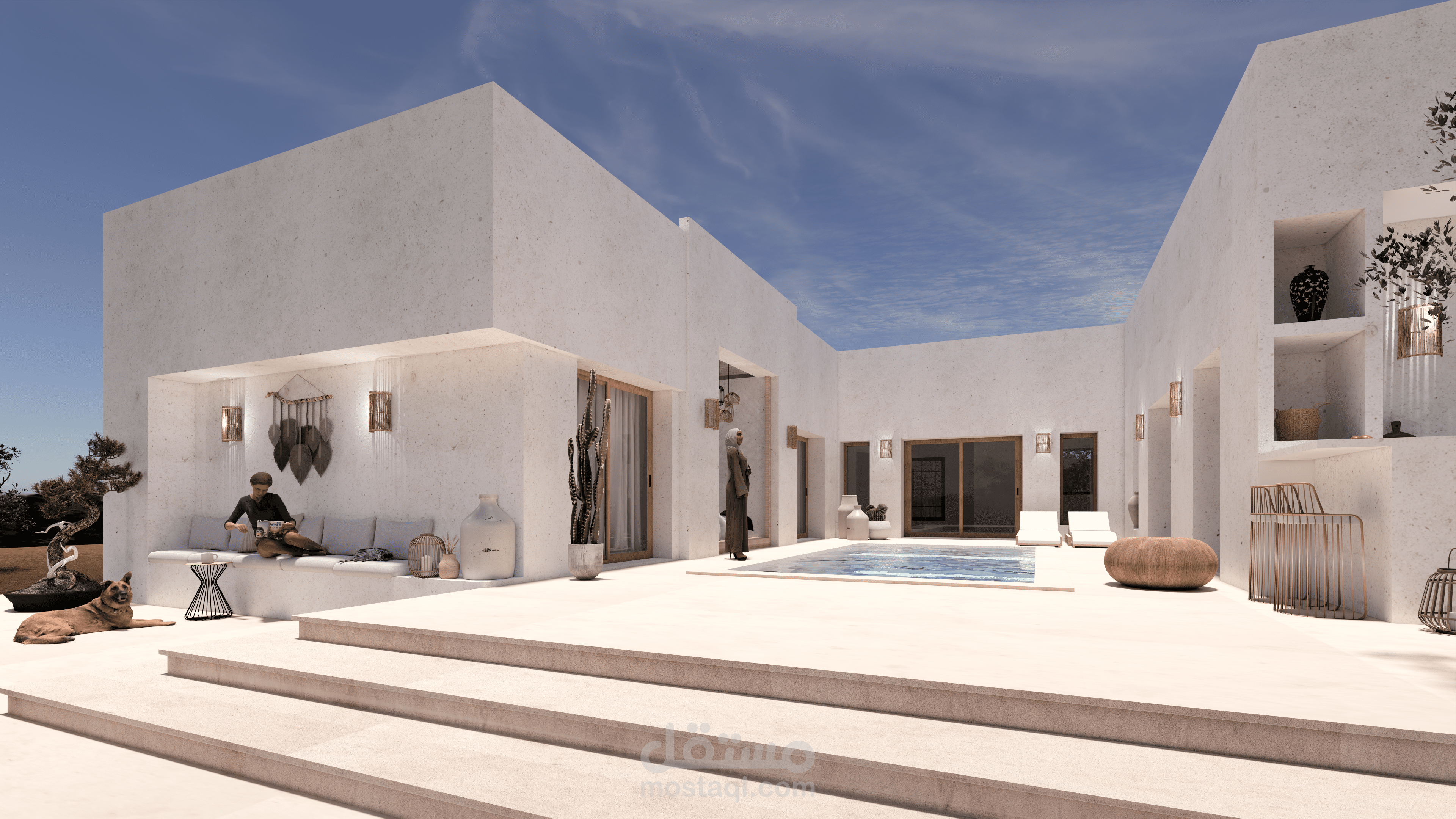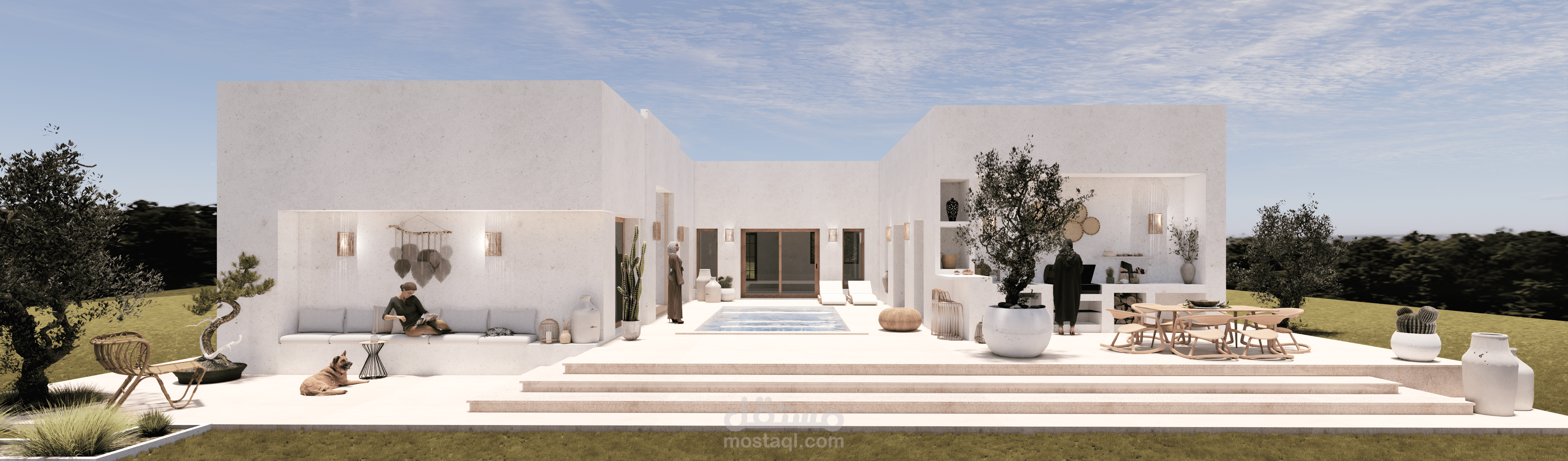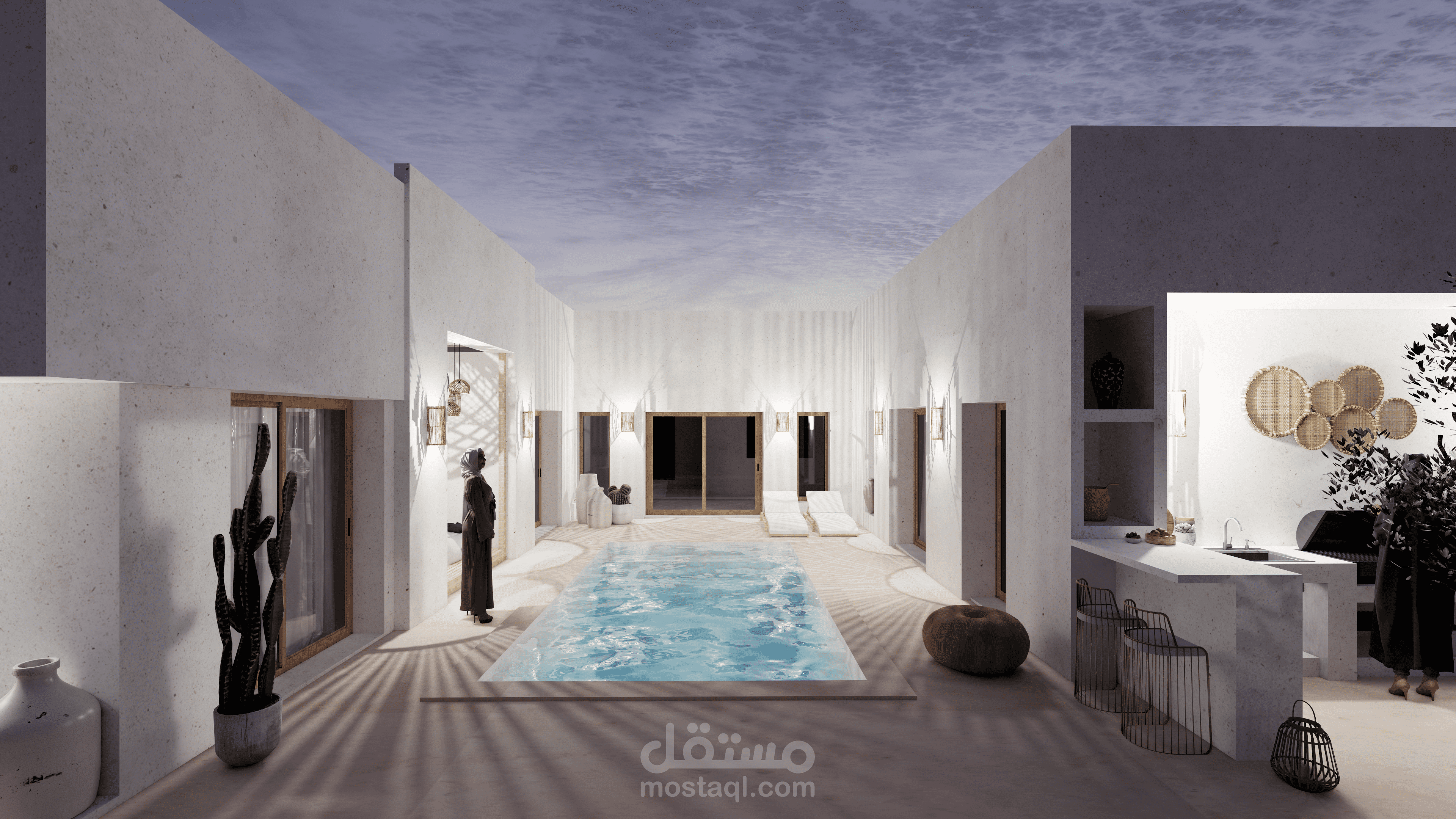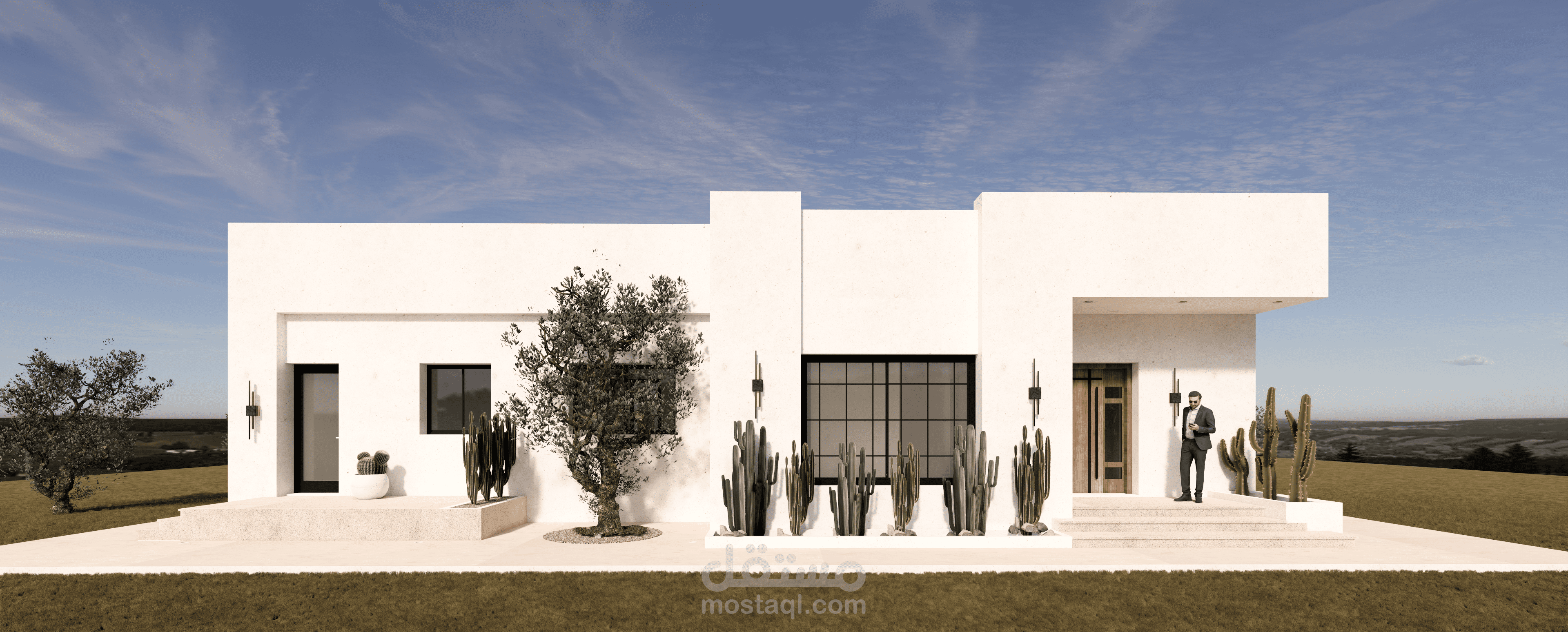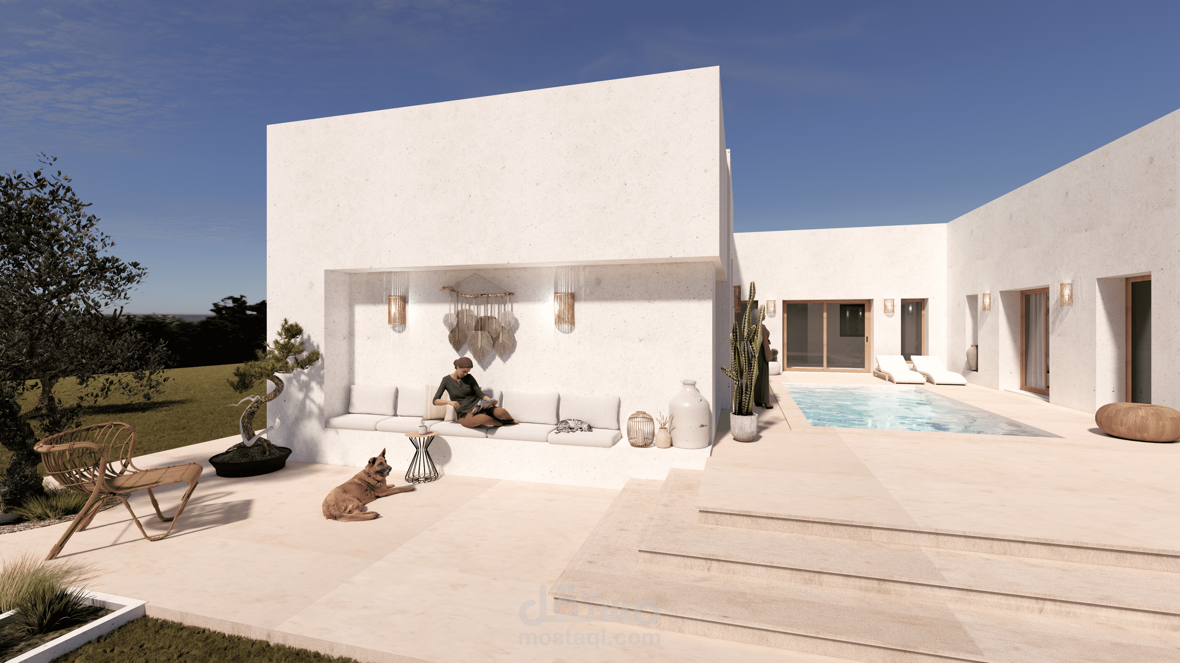 في هذا العمل، ناقشت مع العميل احتياجاته وبدأت برسم الاسكتشات وخطط الطوابق ثنائية الأبعاد، ثم انتقلت إلى النمذجة ثلاثية الأبعاد. وبعد موافقة العميل على النمذجة، انتقلت إلى مرحلة Rendering