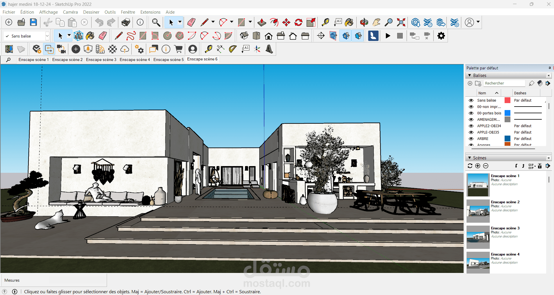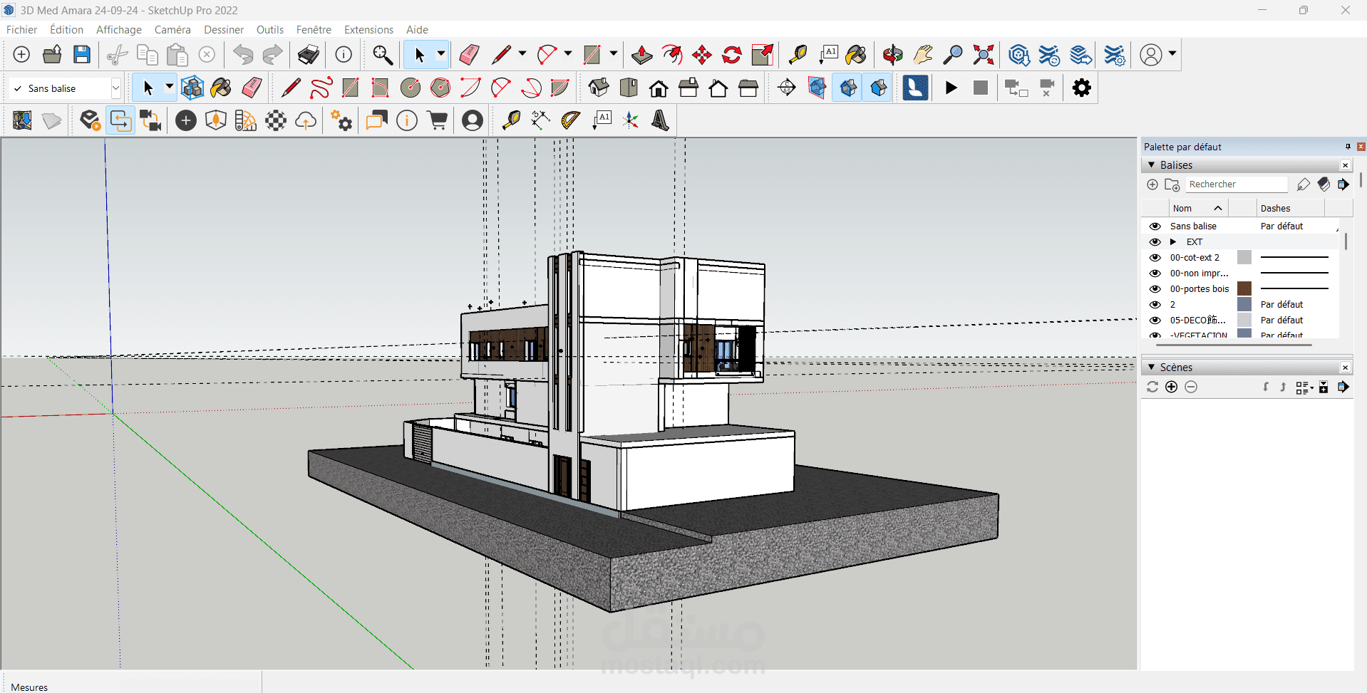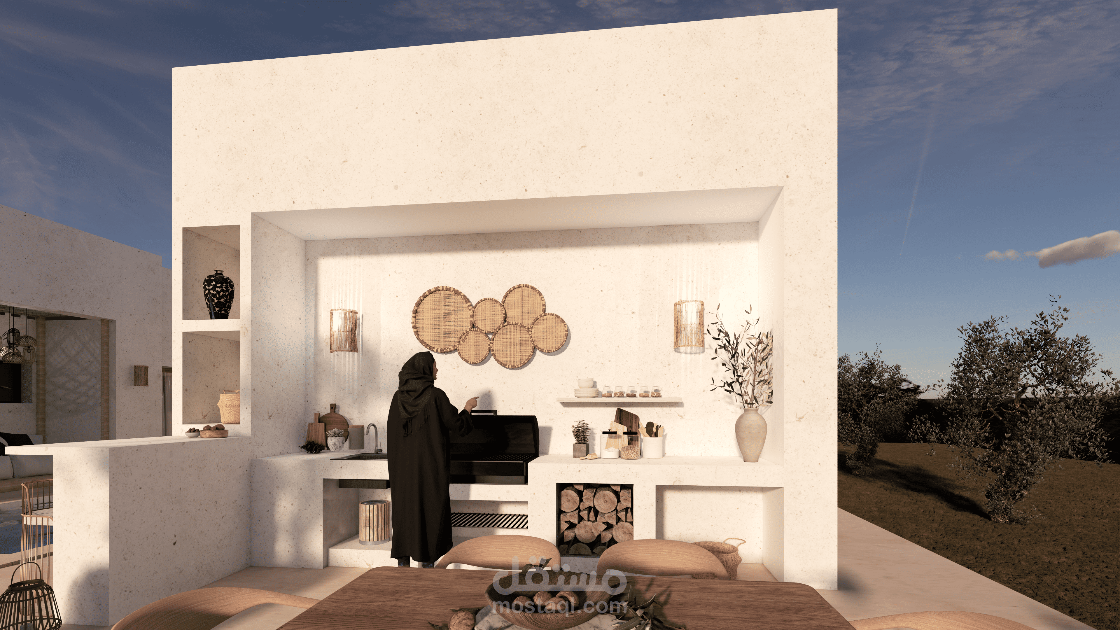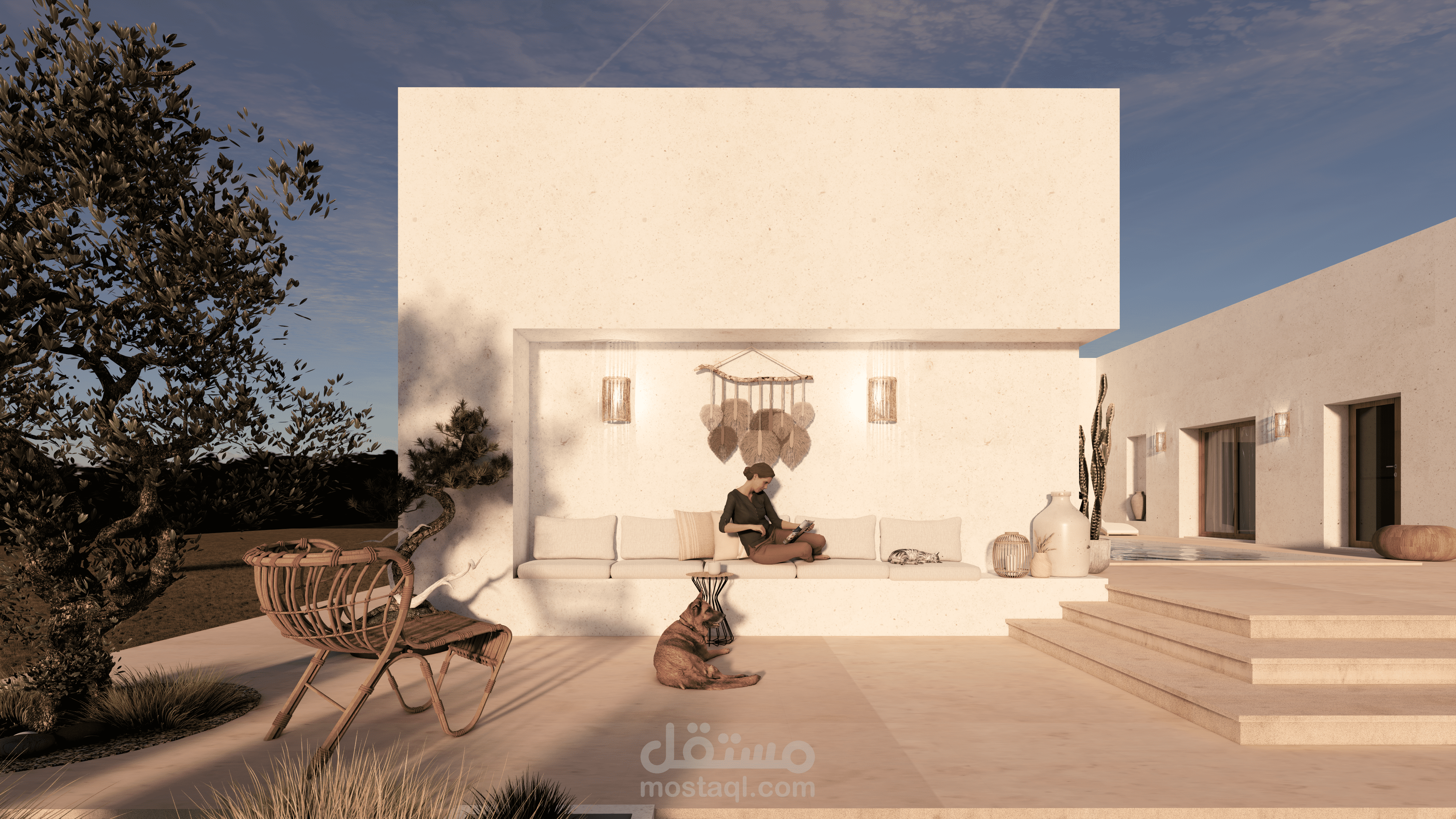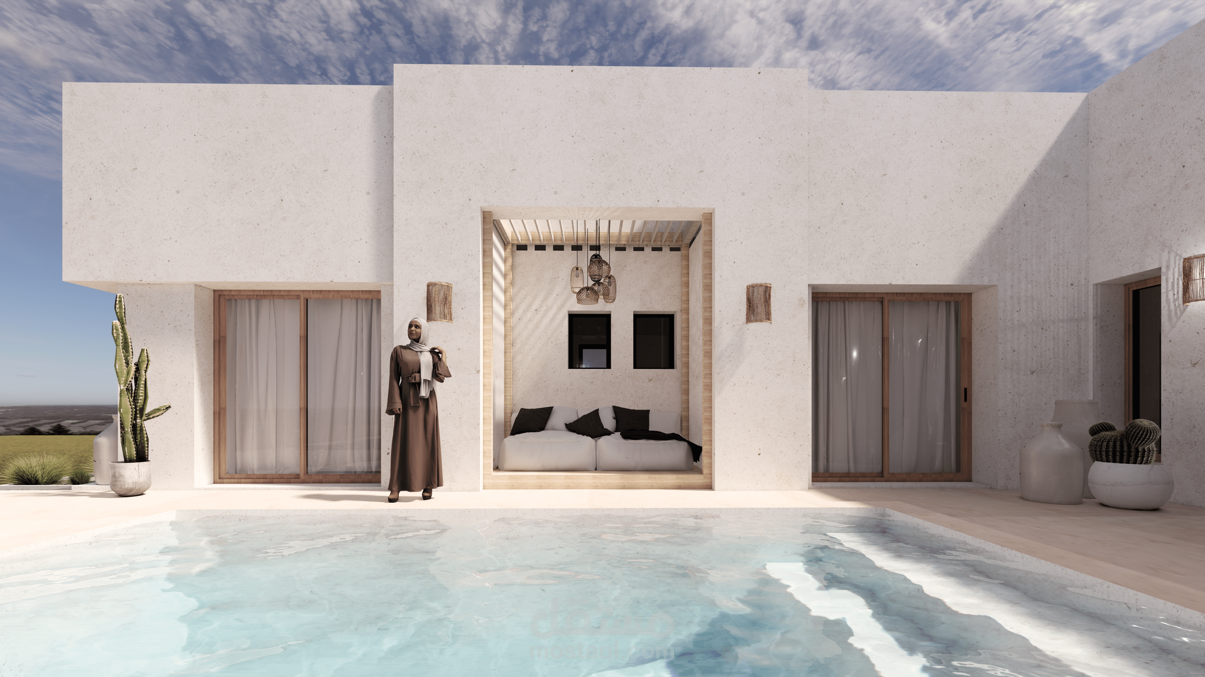في هذا العمل، ناقشت مع العميل احتياجاته وبدأت برسم الاسكتشات وخطط الطوابق ثنائية الأبعاد، ثم انتقلت إلى النمذجة ثلاثية الأبعاد. وبعد موافقة العميل على النمذجة، انتقلت إلى مرحلة Rendering