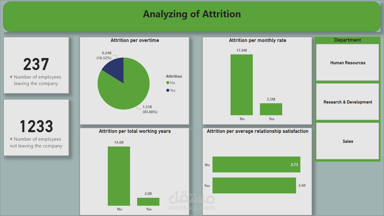 الصفحة الثانية : تحليل خاص بترك الموظين للشركة بناءا علي أقسام الشركة