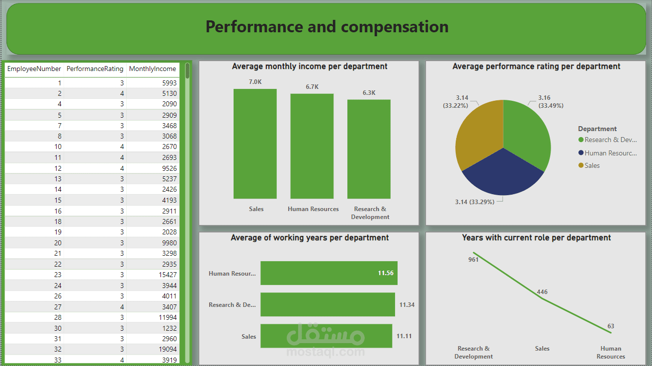 الصفحة الرابعة :تحليل لآداء الموظفين و التعويضات بناءا علي اقسام الشركة